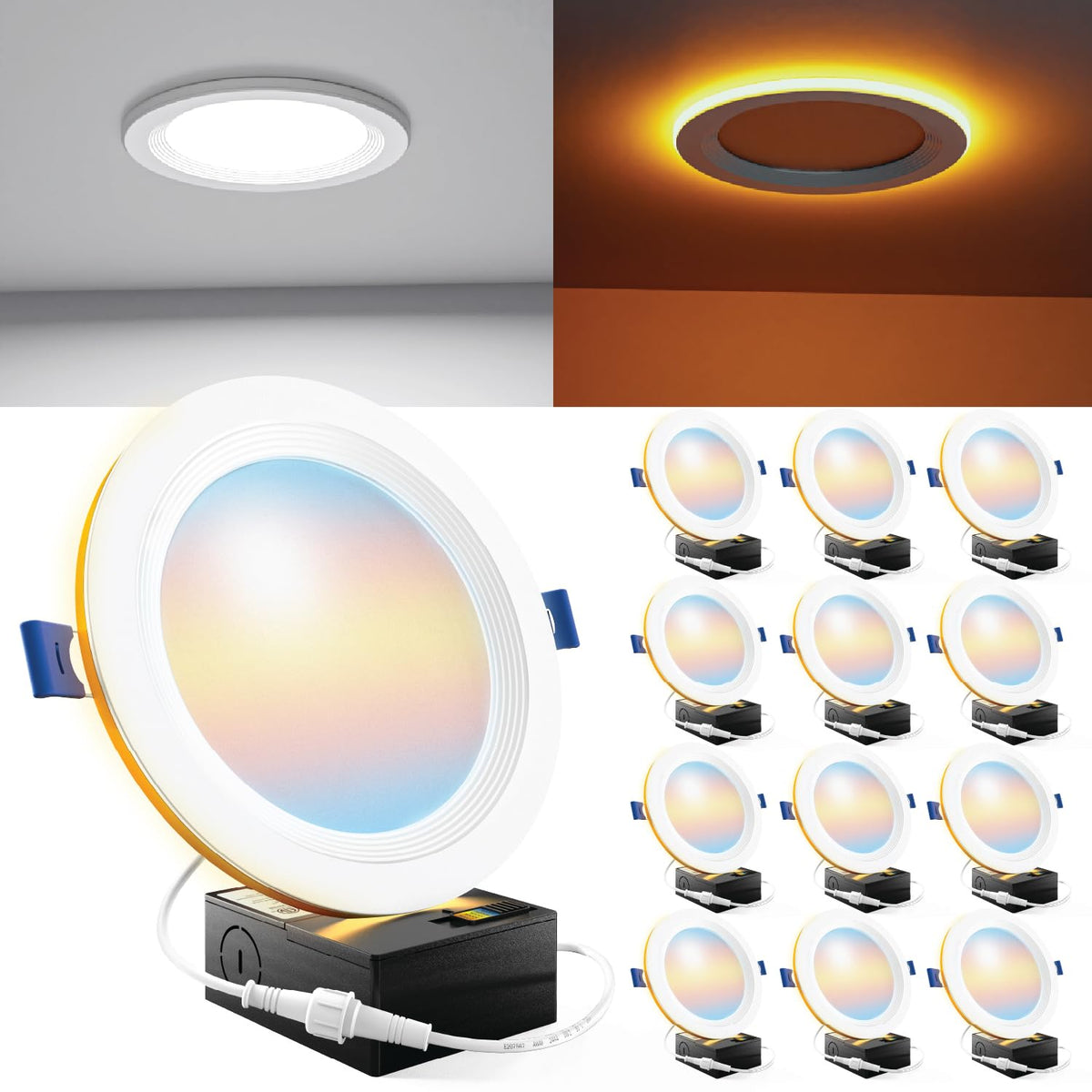 Q: What are the benefits of using Sunco's 6 Inch LED Recessed Light with Night Light?A: The Sunco 12 Pack 6 Inch LED Recessed Light offers multiple benefits, including a built-in night light feature, energy-efficient dimming capabilities from 100% to 10%, and a selection of color temperatures ranging from 2700K to 6000K. It's IC rated for safety, ensuring it won't overheat or ignite surrounding insulation.