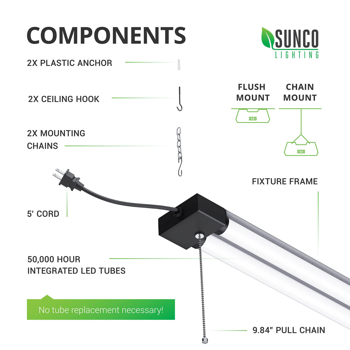 Sunco 16 Pack 40W=260W LED Shop Light for Workshop Garage 4FT, Plug in Frosted Lens Linkable Utility Industrial Fixture, 6000K D