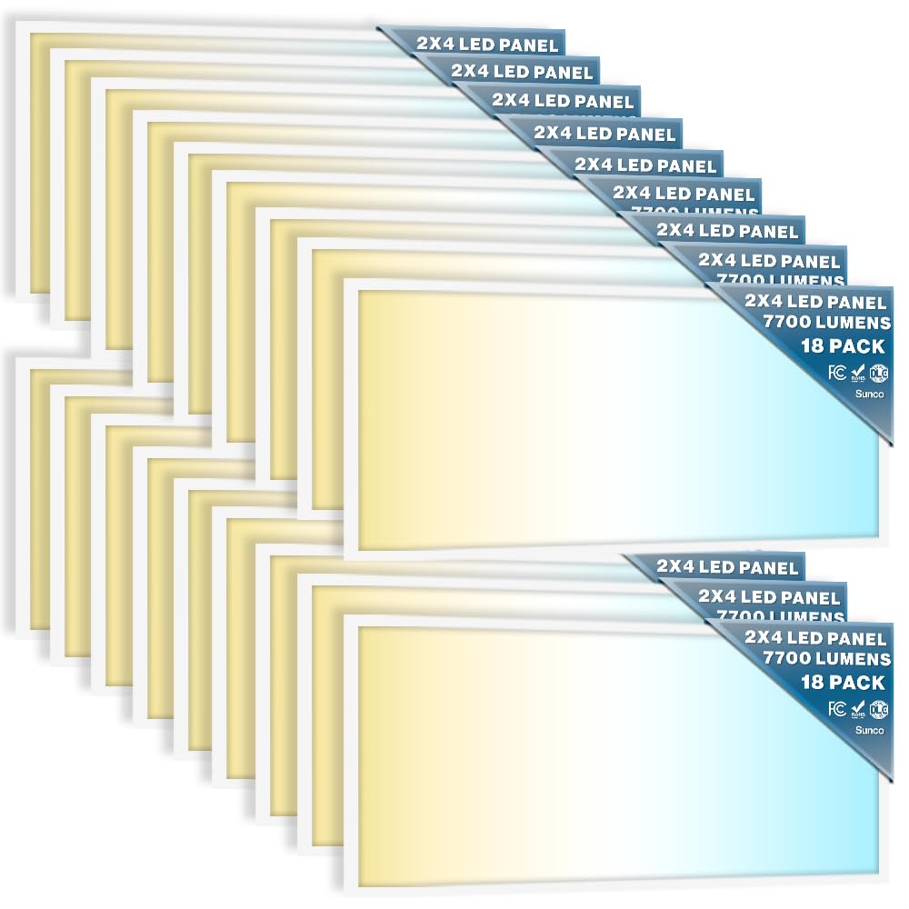 Sunco 18 Pack 2X4 Led Flat Panel Light Drop Ceiling Office Fixture, 7700 Lm, Selectable Features, 40W/50W/60W, 4000K/5000K/6000K