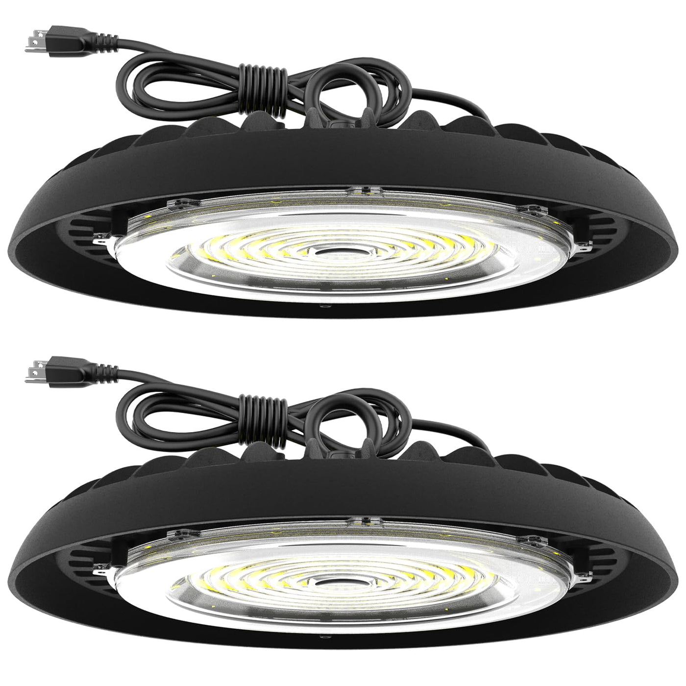 Sunco 2 Pack Ufo Led High Bay Light, Plug & Play Lighting For Warehouse, 5000K Daylight, 200W, Power Cord Included, 28000 Lm, 12
