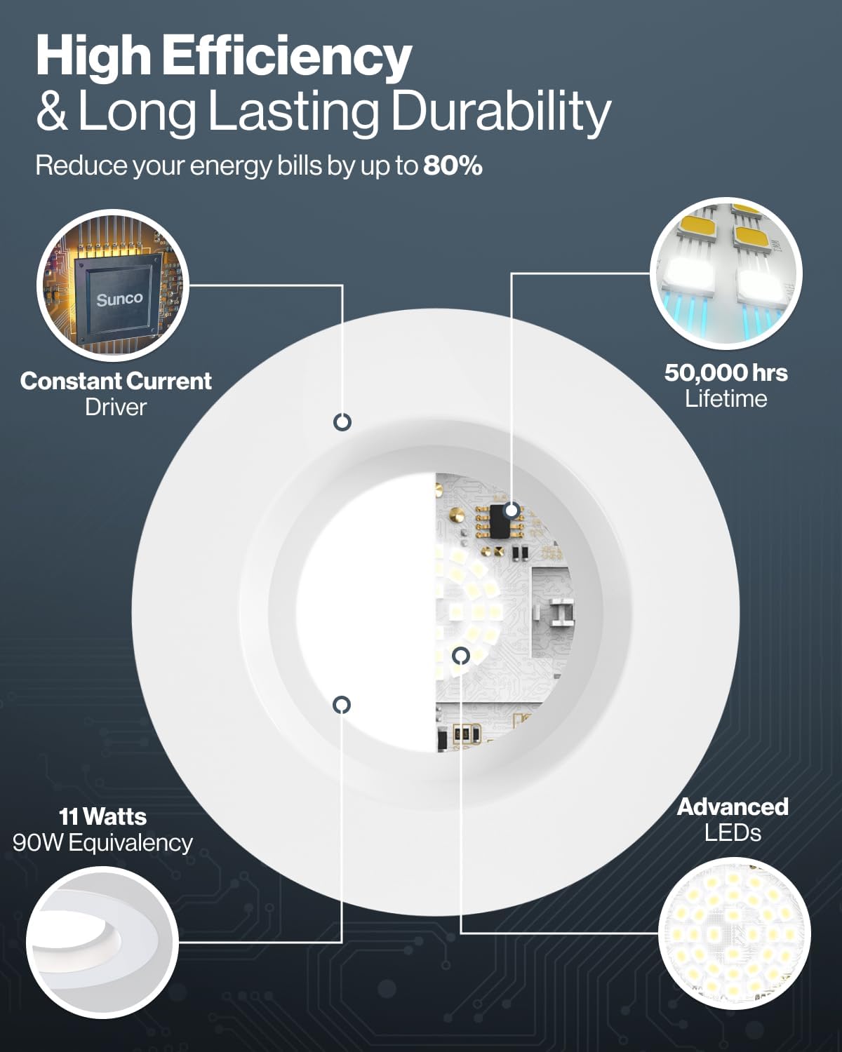 Q: How do I install the Sunco 4 Inch LED recessed lights?A: Installation is simple. The lights are designed for retrofit installation into existing 4” recessed cans. Just remove the old fixture and connect the new LED light, ensuring it's securely in place.