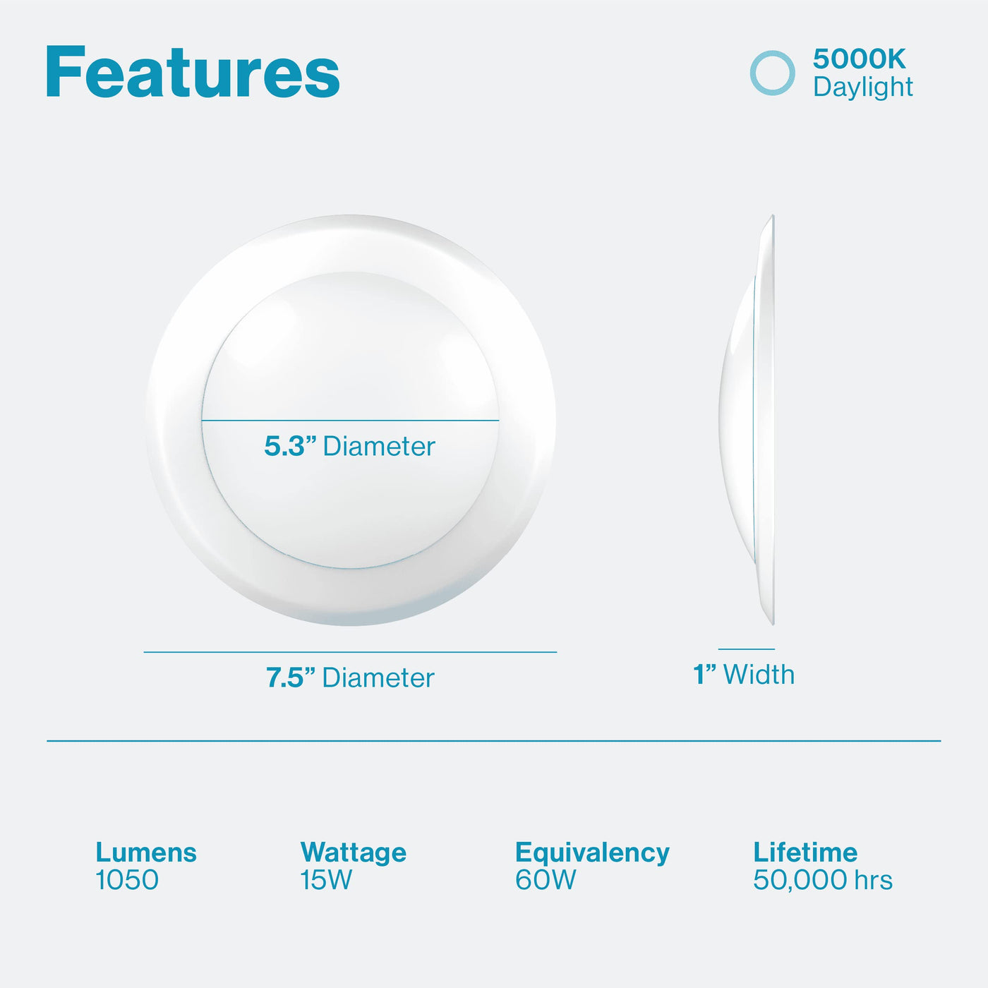 Q: What are the main features of the Sunco Lighting 5/6” LED Disk Lights?A: The Sunco Lighting 5/6” LED Disk Lights feature a low-profile design, providing a sleek look for any ceiling. With a brightness of 1050 lumens and a color temperature of 5000K daylight, they offer bright and efficient lighting. These lights are dimmable and energy-efficient, equivalent to a 100W incandescent bulb while only using 15W.