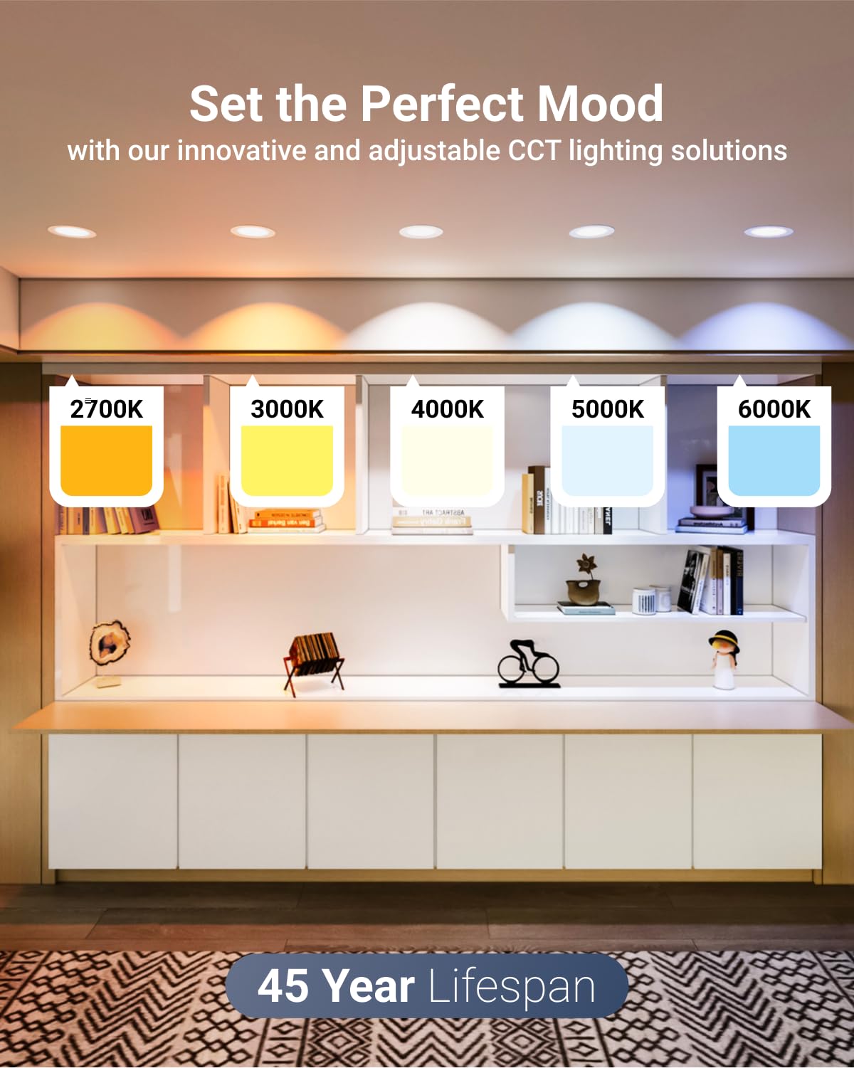 Q: What are the selectable color temperatures for the Sunco 6 Inch LED Recessed Ceiling Lights?A: The Sunco 6 Inch LED Recessed Ceiling Lights offer adjustable color temperatures of 2700K, 3000K, 4000K, 5000K, and 6000K, allowing you to customize the ambiance of your space.