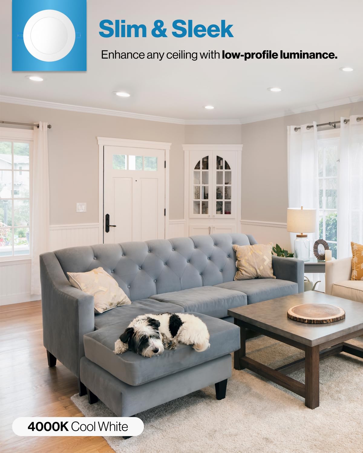 Sunco 4 Inch Led Recessed Lights, Slim Canless Ceiling Lighting, 650 Lm, 10W (60W Equivalent), 4000K Cool White, Dimmable, Wafer