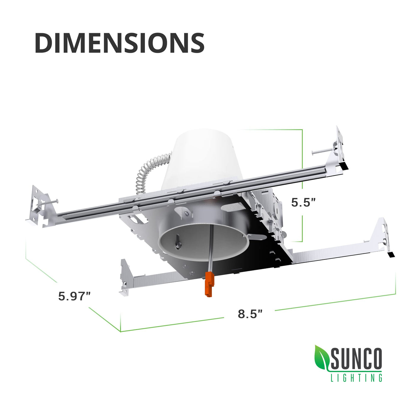 Q: Is the Sunco recessed lighting housing suitable for new construction?A: Yes, the Sunco recessed lighting housing is specifically designed for new construction. It includes adjustable bar hangers for easy installation in framing before drywall is put up, making it ideal for builders and homeowners alike.
