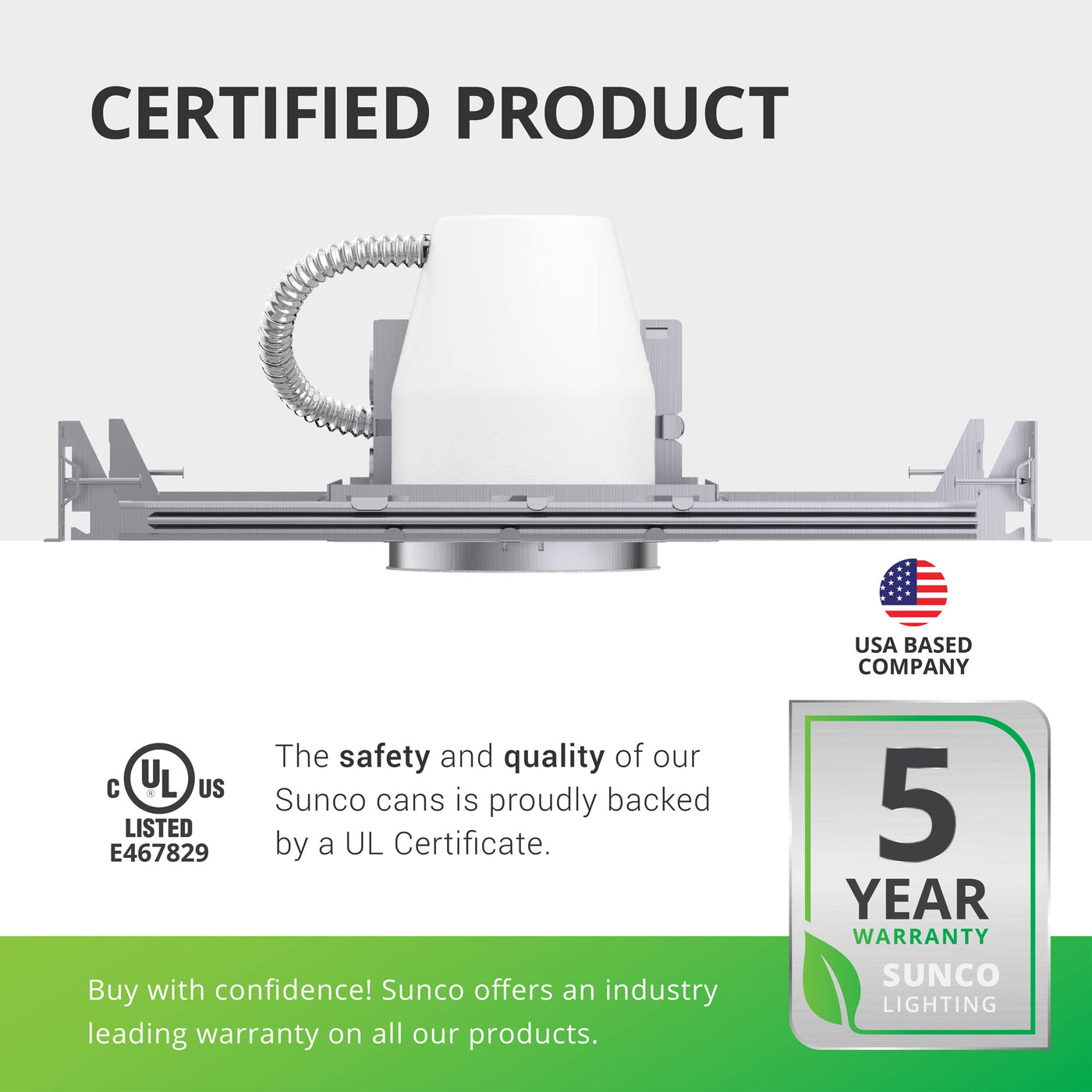 Q: Is this product UL listed, and what does that mean for safety?A: Yes, the Sunco recessed lighting housing is UL listed, which means it has been tested for safety and performance by Underwriters Laboratories. This ensures that the product meets high safety standards and is reliable for use in your home.