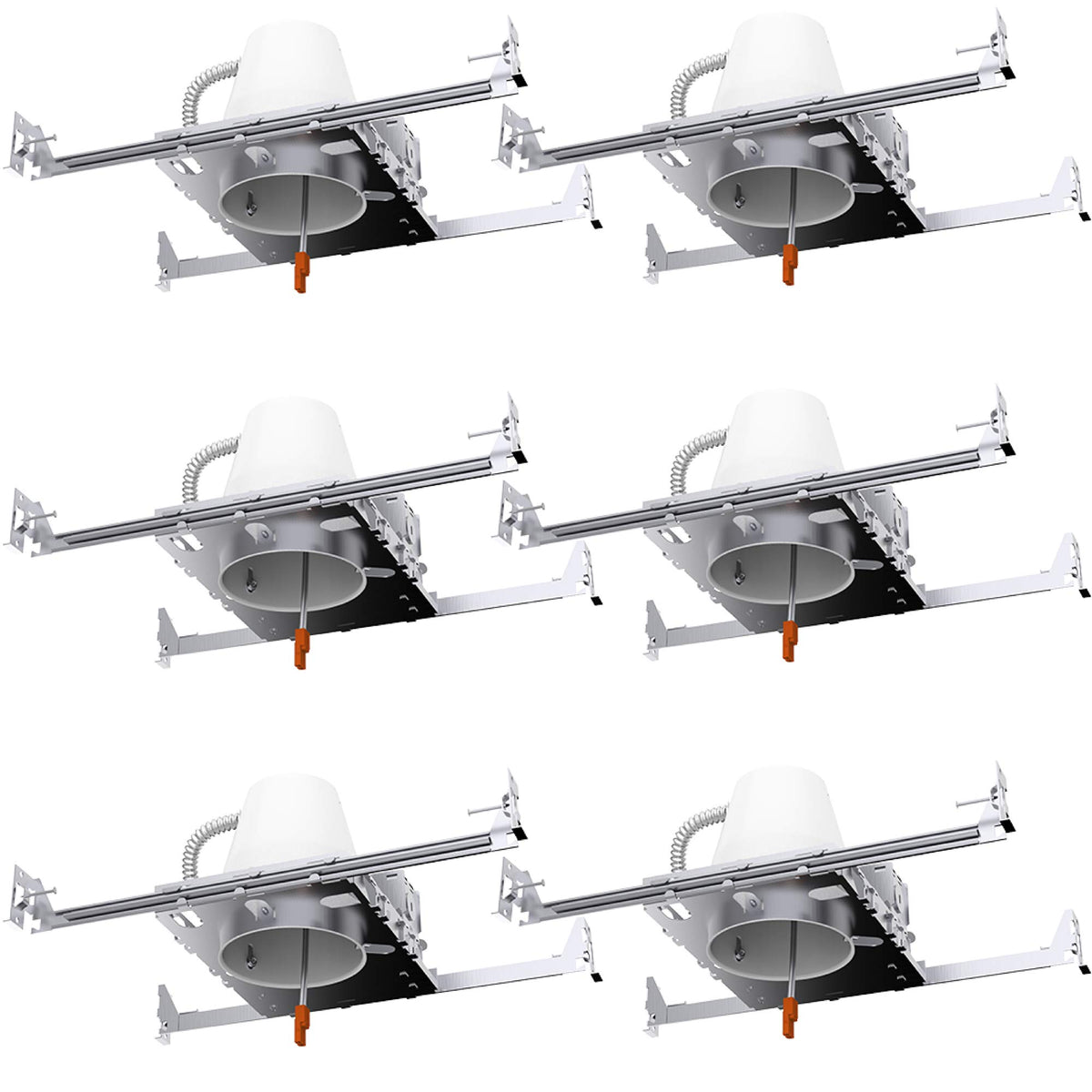 4 Inch New Construction Can Recessed Light Housing | AIR TIGHT & IC RATED - Sunco's new construction cans are airtight and thermally protected and designed to be installed in the ceiling surrounded by insulation. Airtight design keeps air conditioning or heating from leaking out of the home through the housing. | SIMPLE INSTALL - Follow our easy instruction guide for a fast and secure setup. Sunco's direct wire new construction cans with junction box are installed to the framing with adjustable bar hangers prior to drywall installation. TP24 connector included. | UL LISTED - We uphold the highest standards for all our products by testing each product for optimal performance and safety. | SUNCO BENEFITS - 10 Year Protection! Sunco is proudly based in the USA, offering quality products at affordable prices backed by industry-leading warranties and knowledgeable support specialists.