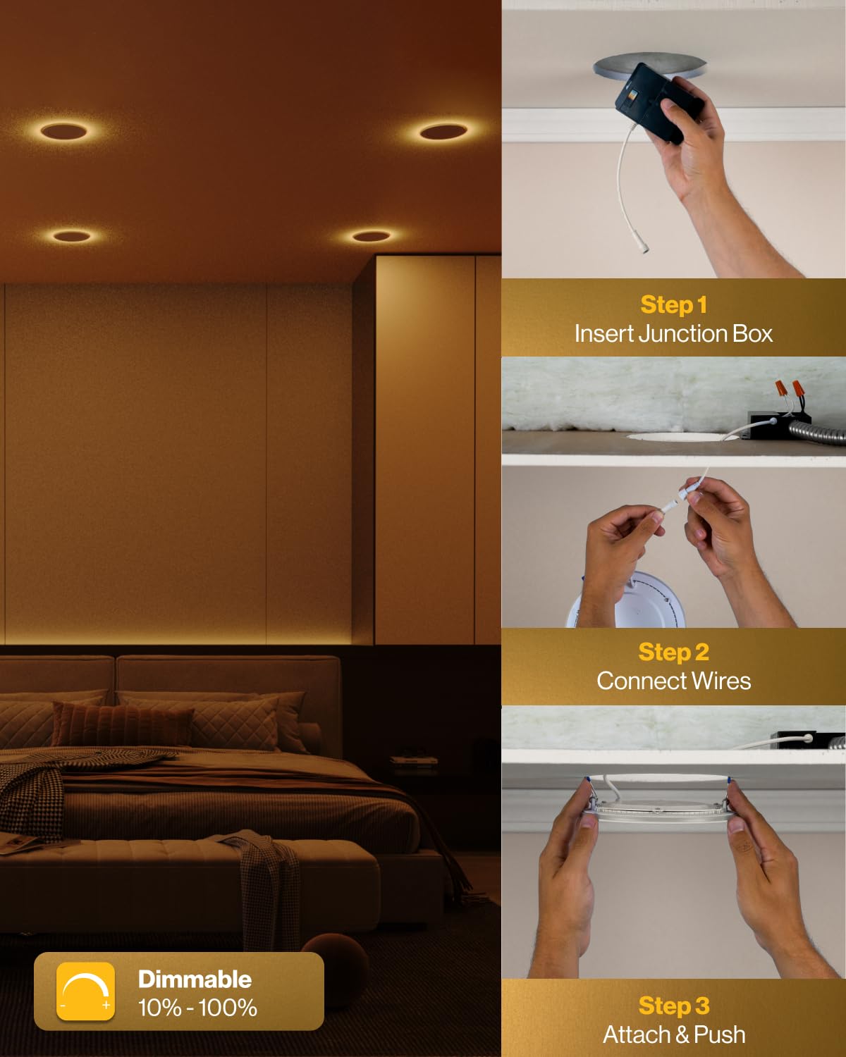 Q: Can I use these lights in insulated ceilings?A: Yes, these lights are IC rated, meaning they are thermally protected and safe to use in insulated ceilings without the risk of overheating or igniting surrounding materials.