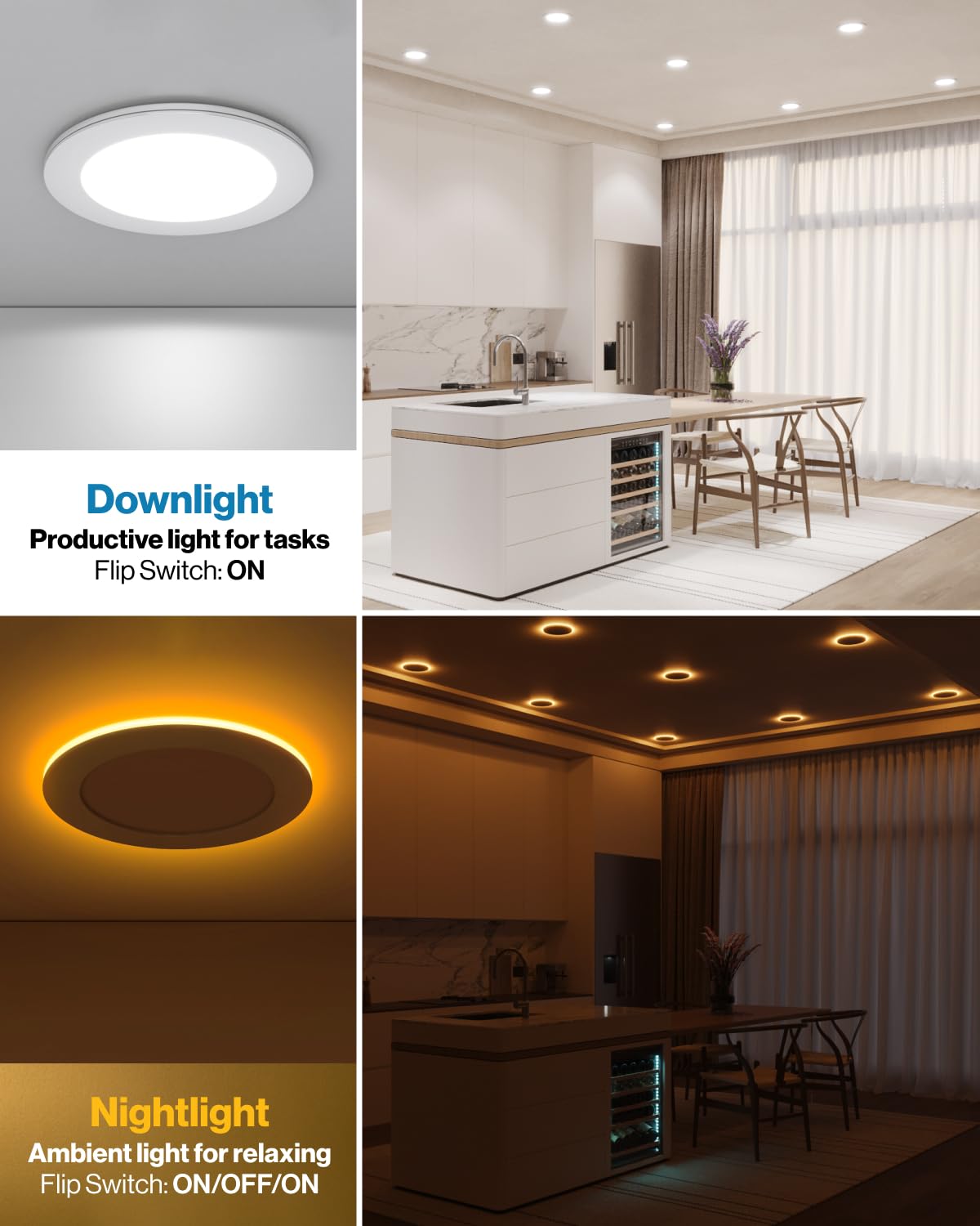 Q: How does the night light feature work on the Sunco 4 Inch LED Recessed Lights?A: The night light feature activates by flipping the light switch twice, allowing you to use a soft 2000K glow for nighttime without disturbing your sleep.