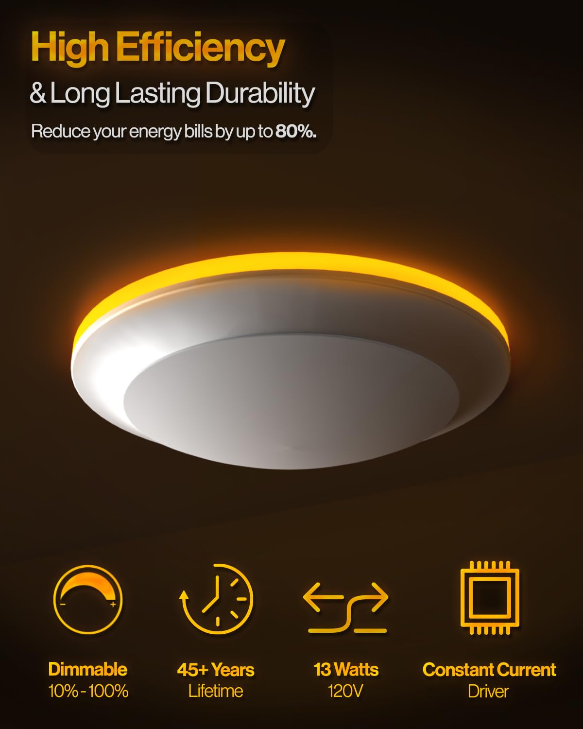 Sunco 4 Pack 6 Inch Led Nightlight Disk Lights Flush Mount Ceiling Light Fixture Recessed, 13W, 1200 Lumens, Selectable Cct, Dim