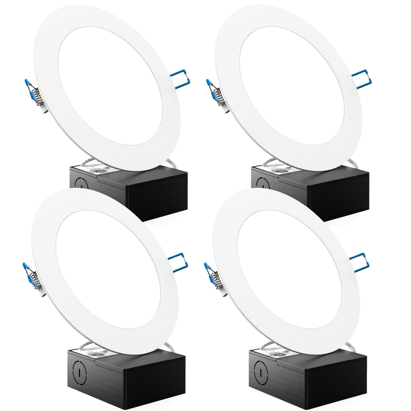 Q: What are the benefits of using Sunco 4 Pack 6 Inch Ultra Thin LED Recessed Ceiling Lights?A: The Sunco 4 Pack 6 Inch Ultra Thin LED Recessed Ceiling Lights are designed for safety and efficiency. They are IC rated, meaning they are thermally protected, preventing overheating and igniting surrounding insulation. With dimmable features (10%-100%), they provide flexibility to create the perfect ambiance for any setting.