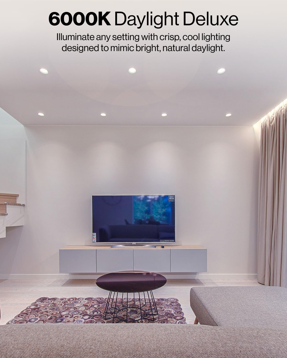 Q: What color temperature do these lights provide?A: These lights provide a 6000K Daylight Deluxe color temperature, which creates a bright, daylight-like ambiance.