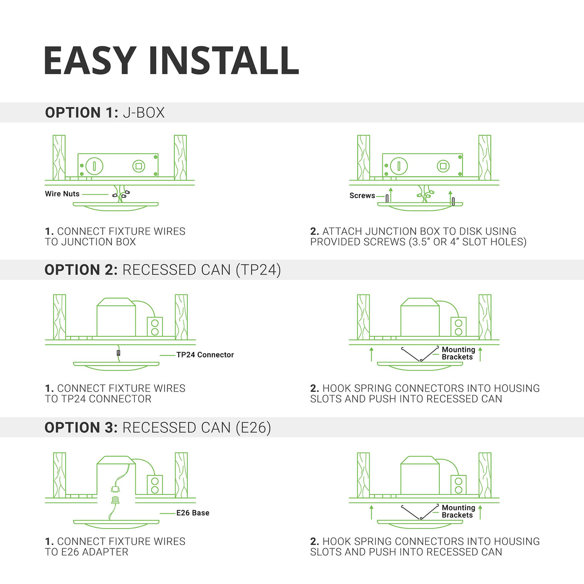 Q: What is included in the installation process for these lights?A: The Sunco LED Disk Downlights can be directly wired to a 4"/6" junction box, eliminating the need for a can. This simple installation allows for quick setup and instant bright lighting in your home or office.