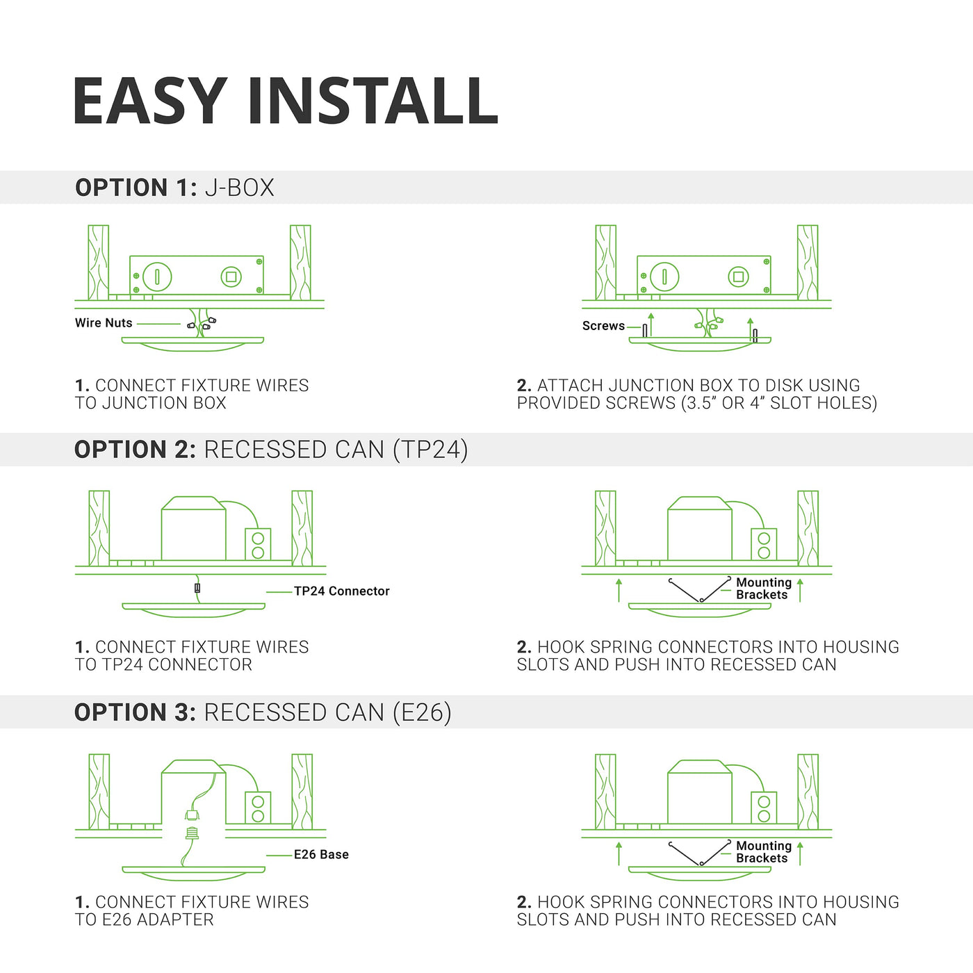 Q: What is the best way to install the Sunco LED Disk Lights?A: Installation is simple as Sunco LED Disk Downlights can be directly wired to a 4-inch or 6-inch junction box, eliminating the need for a can. They can be installed directly onto the ceiling, making it easy to achieve bright lighting in your home or office.