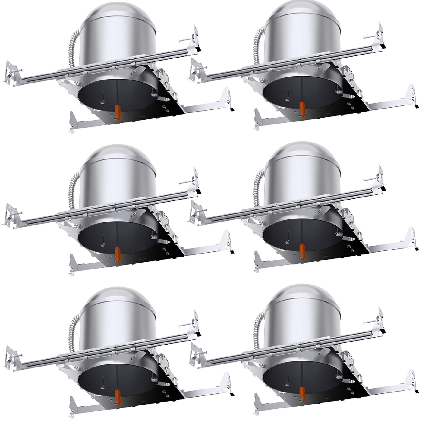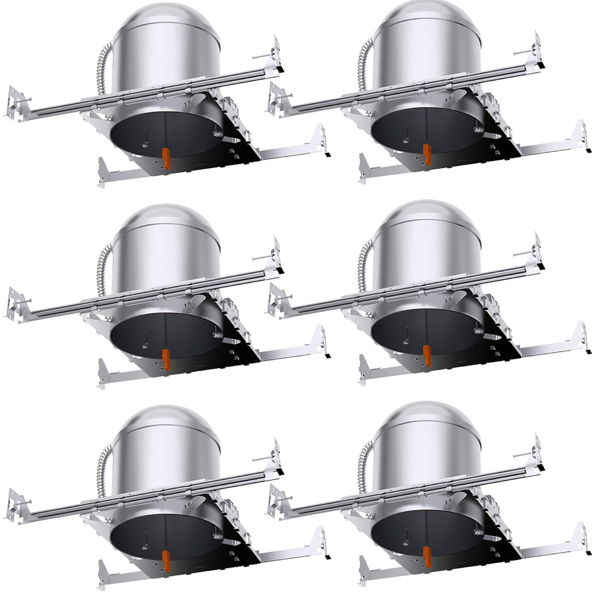 Top Rated 6 Inch New Construction Can Recessed Light Housing | ✅ AIR TIGHT & IC RATED - Sunco's new construction cans are airtight and thermally protected and designed to be installed in the ceiling surrounded by insulation. Sunco's cans won't overheat and cause a fire in the roof or overhead joist space. Airtight design keeps air conditioning or heating from leaking out of the home through the housing. | ✅ SIMPLE INSTALL - Follow our easy instruction guide for a fast and secure setup! Sunco's direct wire new construction cans with junction box are installed to the framing with adjustable bar hangers prior to drywall installation. TP24 connector included. | ✅ UL LISTED - We uphold the highest standards for all our products by testing each product for optimal performance and safety. Our Recessed New Construction Cans are UL certified. | ✅ SUNCO BENEFITS - 10-Year Warranty! Sunco is proudly based in the USA, offering quality products at affordable prices backed by industry-leading warranties and knowledgeable support specialists.