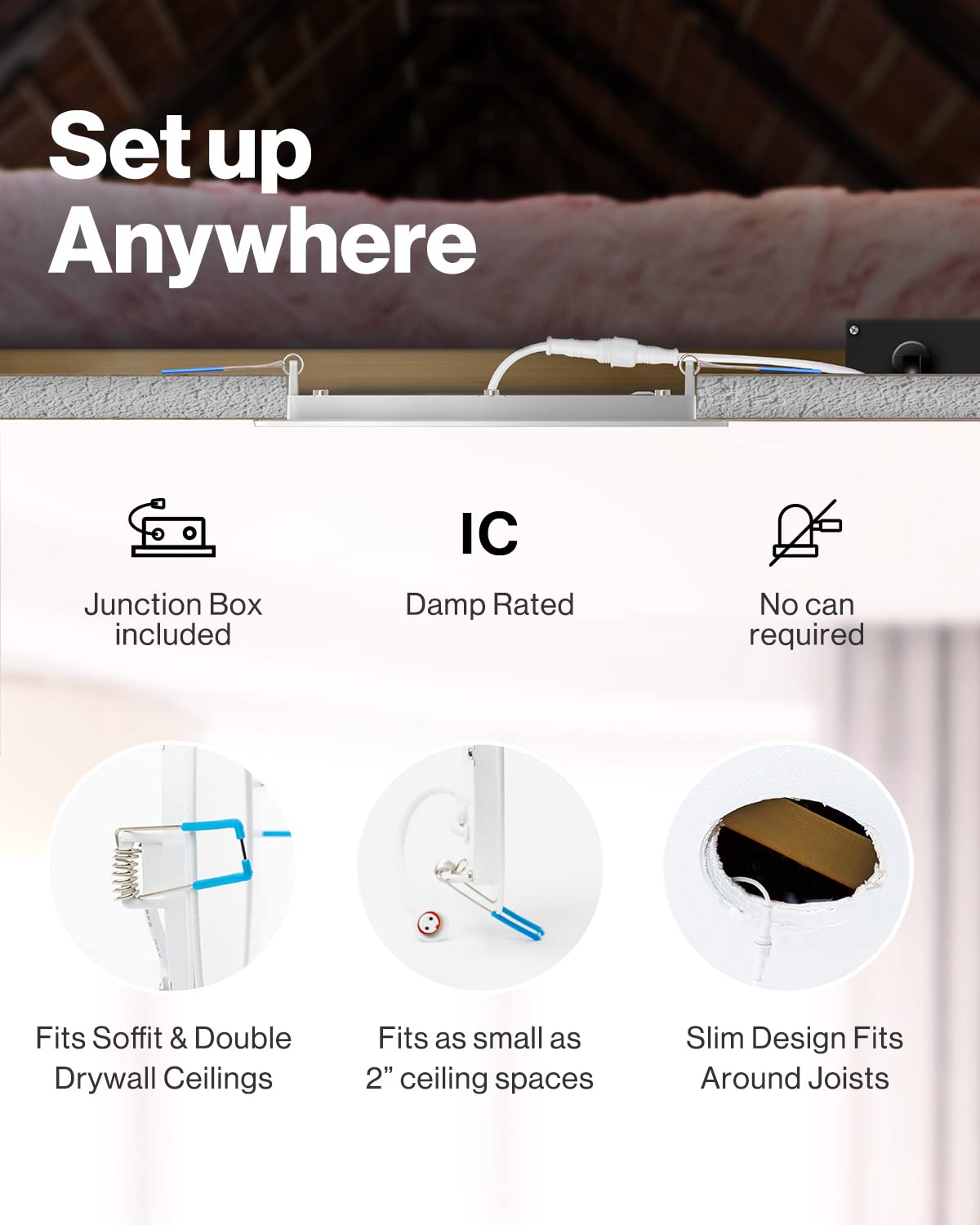 Q: How do I install the Sunco recessed lights?A: Installation is simple and requires no can. Just cut a hole in the ceiling to the appropriate size, fold in the spring-loaded brackets, and push the fixture up into the hole. It fits any ceiling type, including double drywall and soffit.