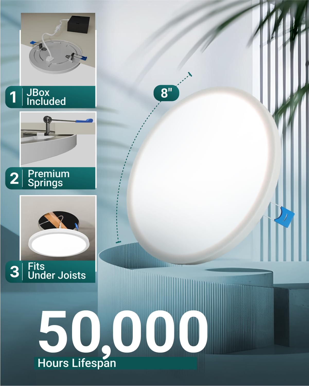 Sunco 6 Pack 8 Inch Canless Slim Recessed Lighting, Led Flush Mount Ceiling Light, Thin Round Flat Panel Fixture, 1800 Lm, 15W=1
