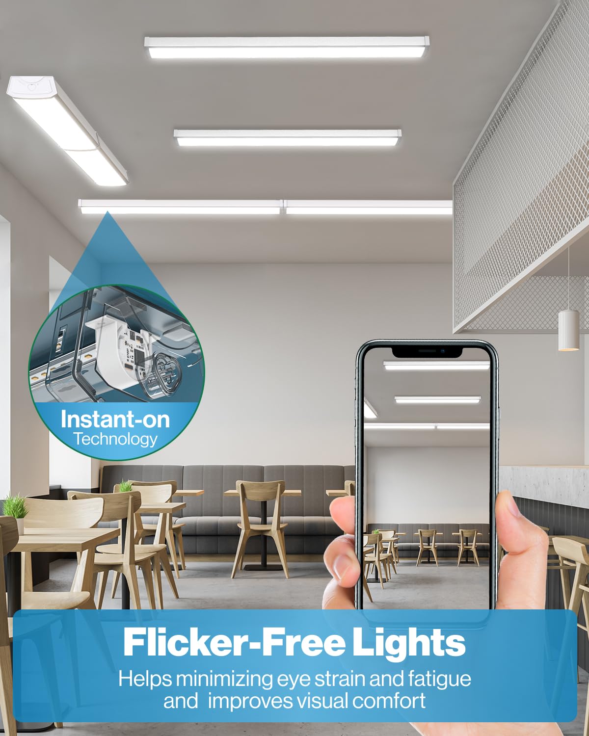 The light is designed for simple installation, allowing you to mount it directly to the ceiling with ease. It turns on instantaneously, eliminating the wait time associated with traditional lighting solutions. Additionally, this shop light is linkable, allowing you to daisy chain up to 8 units together, which is perfect for larger areas or custom lighting layouts. This feature not only helps in achieving the desired brightness but also contributes to energy savings in your home or workspace.