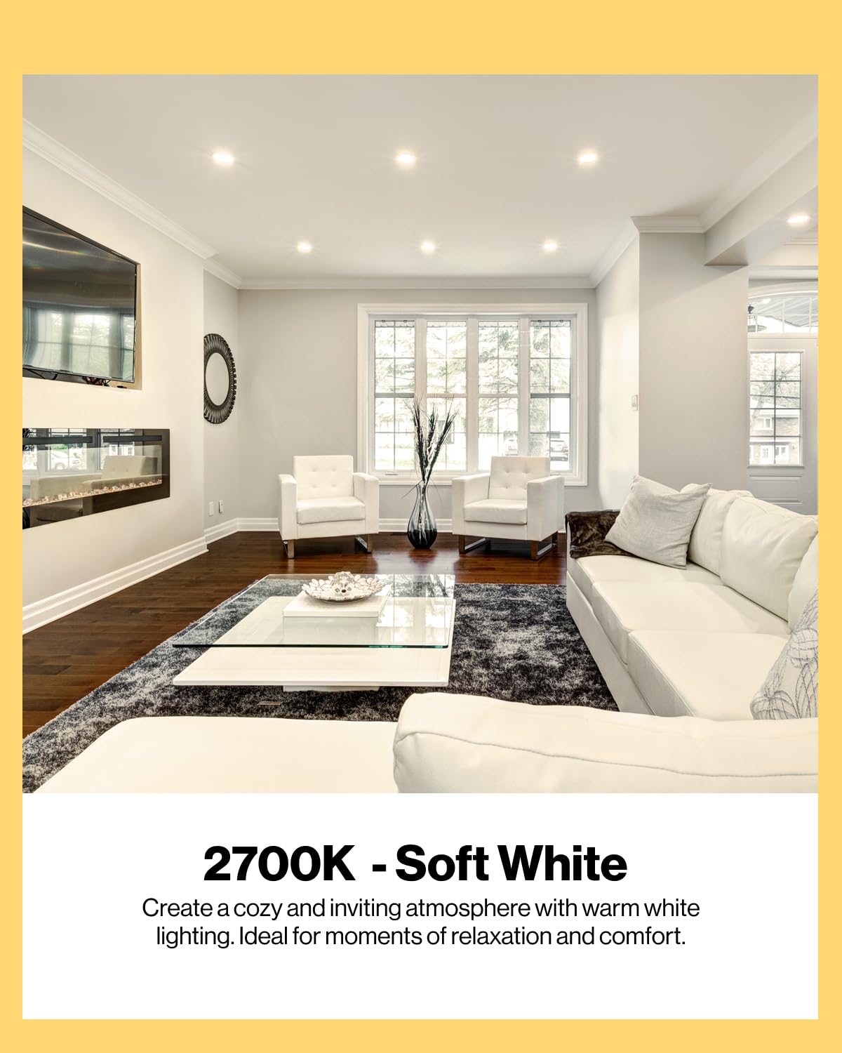 Constructed from durable plastic, these LED bulbs offer a soft white glow at 2700K, making them ideal for bedrooms, kitchens, living areas, and offices. They are engineered to provide seamless dimming capabilities from 100% to 10%, allowing you to adjust the brightness to suit your mood or decor. With a wide beam angle of 110°, these bulbs efficiently cast light over large areas, ensuring your space is well-lit and inviting. The BR40 LED bulbs are designed to fit 6” recessed cans, making installation easy and hassle-free.