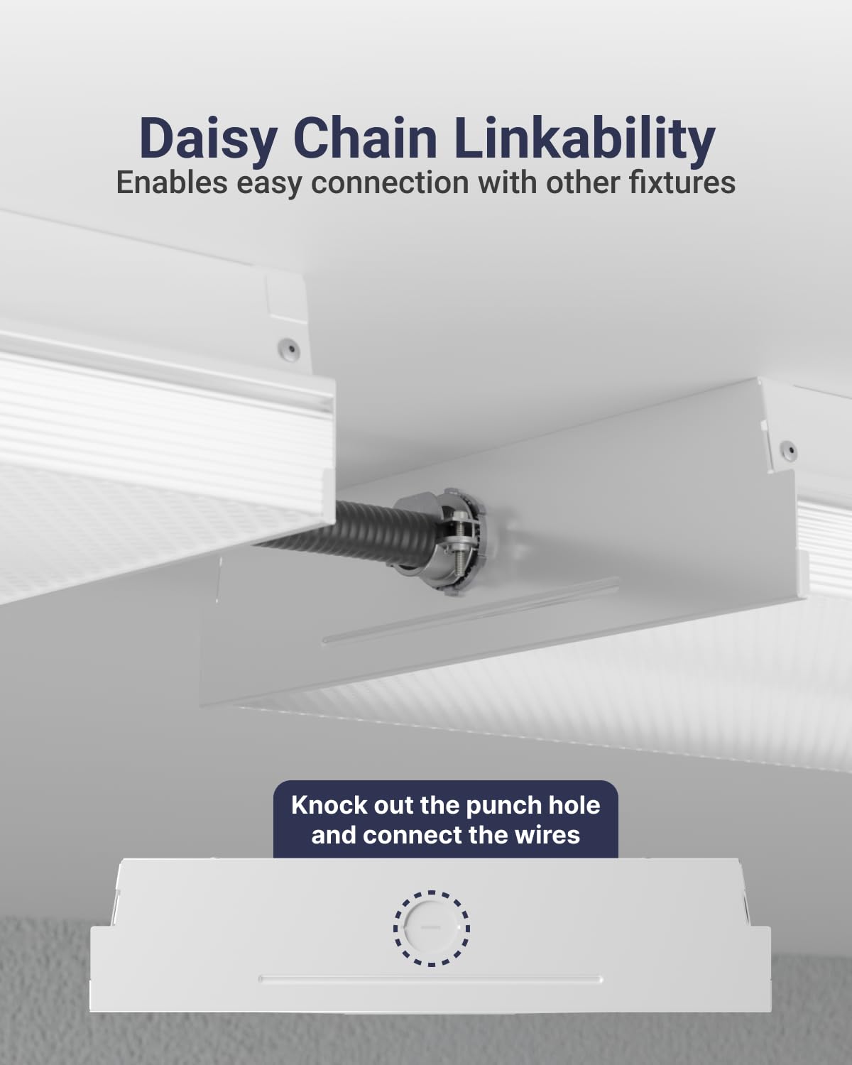 Q: Can I link multiple Sunco LED shop lights together?A: Yes, you can easily link up to 5 Sunco LED shop lights together using connectors. This feature allows for an extendable design, making it perfect for larger spaces like workshops or garages.