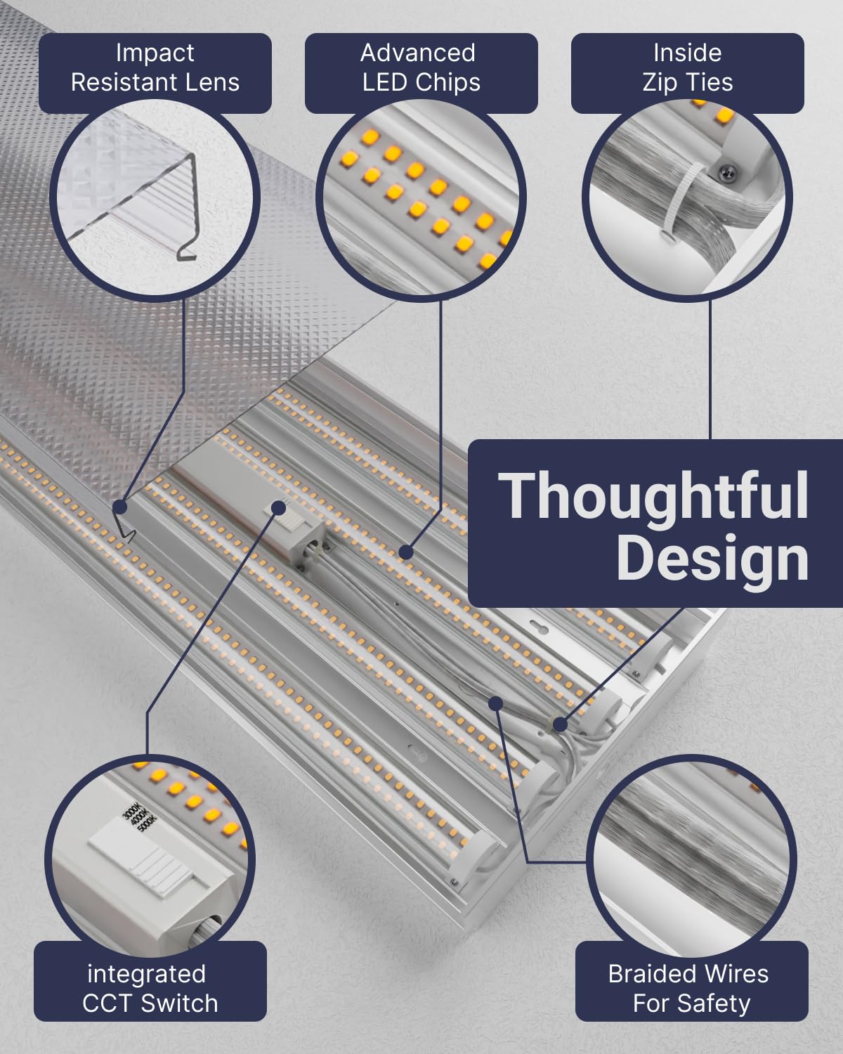 Sunco Led Garage Lights, 11 Inch Shop Light Prisma Wraparound, Utility Ceiling Light Fixture For Workshop, 8500 Lumens, 72W, Sel
