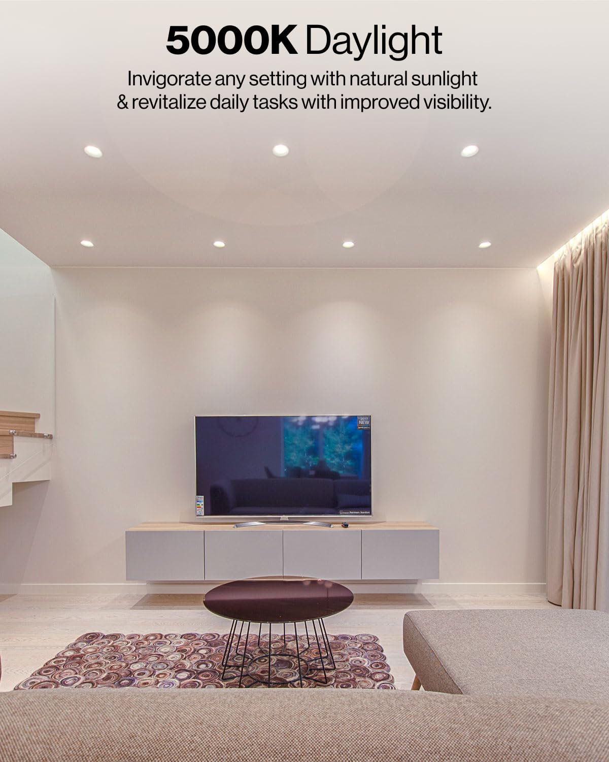 Q: What is the color temperature of the Sunco recessed downlights?A: The Sunco recessed downlights offer a color temperature of 5000K, providing bright daylight illumination that enhances visibility and vibrancy in your space.