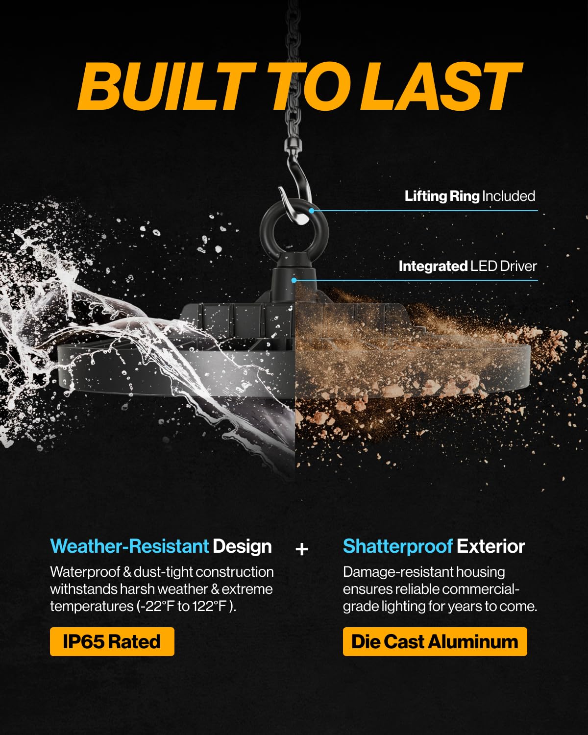 Q: Is the Sunco UFO LED High Bay Light suitable for outdoor use?A: Yes, the Sunco UFO LED High Bay Light has an IP65 waterproof rating, making it suitable for outdoor use in various weather conditions while providing reliable and bright illumination.