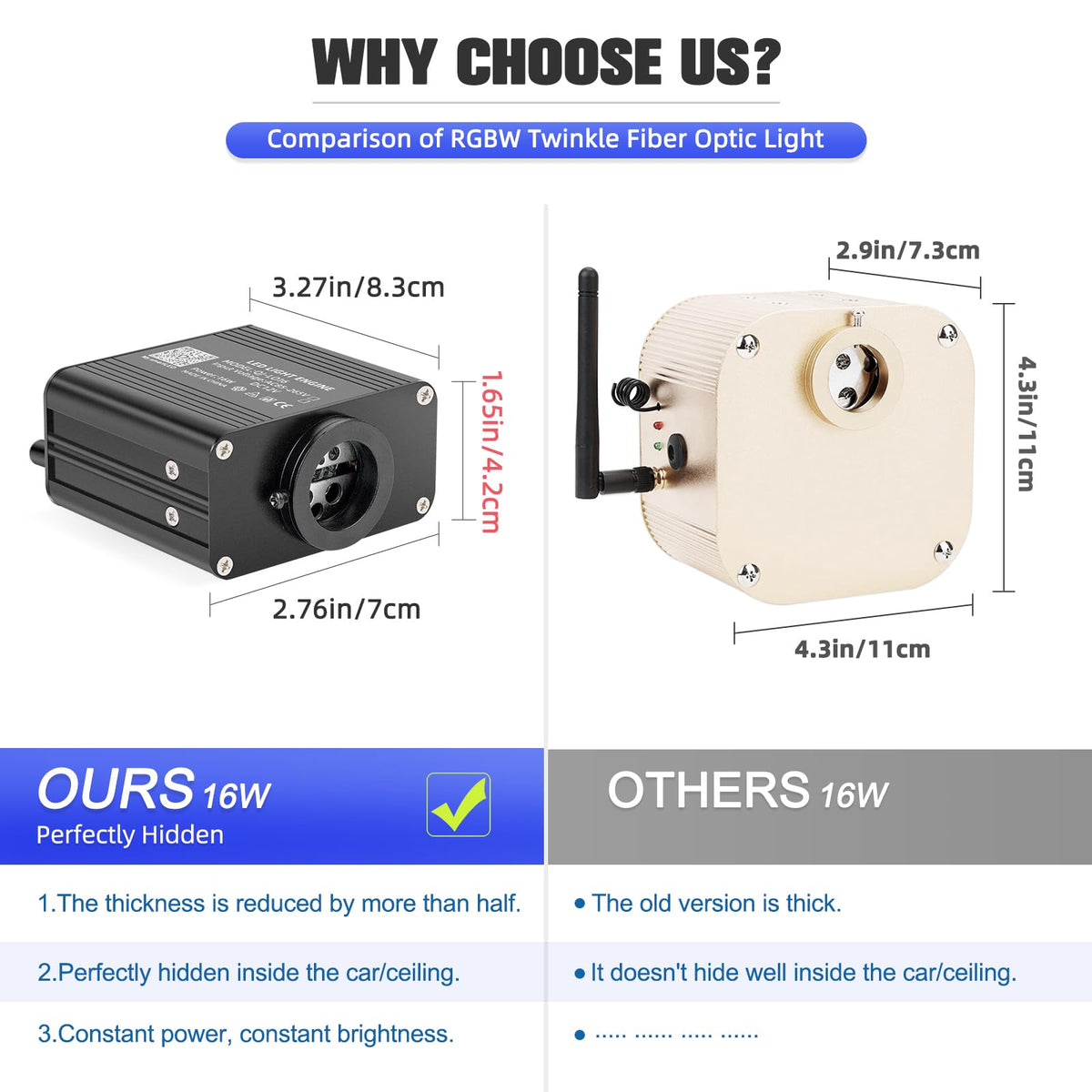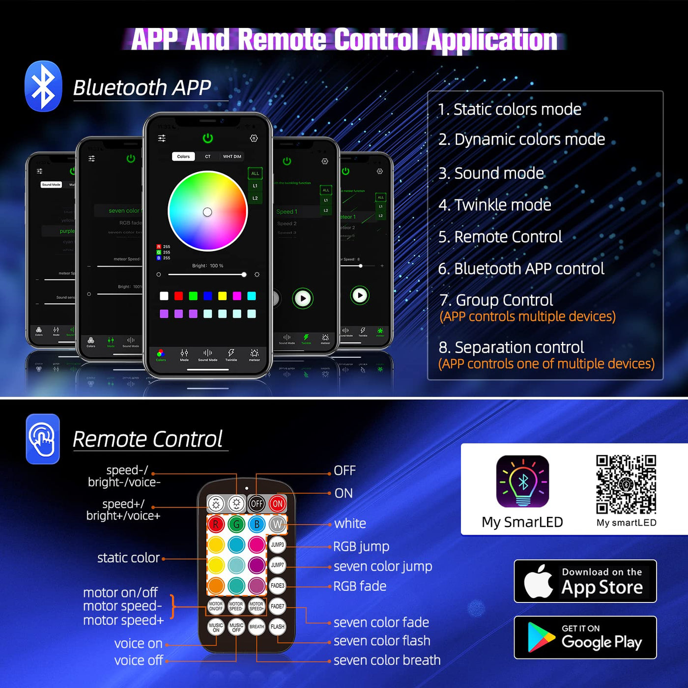Sunkenet 16W Twinkle Starlight Headliner Kit, 150Pcs*0.03In*6.5Ft Fiber Optic Strands Bluetooth App/Remote/Music Control, Rgbw C