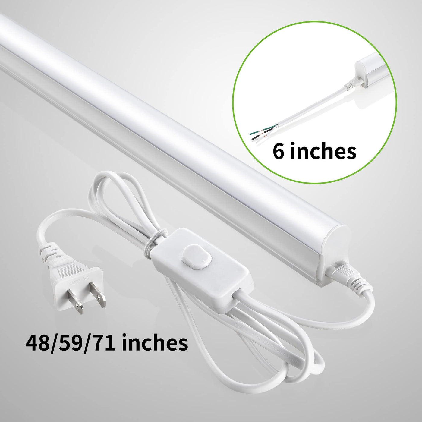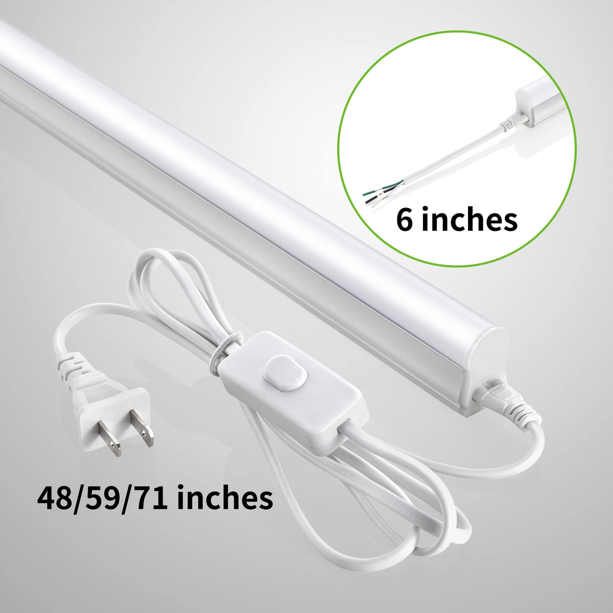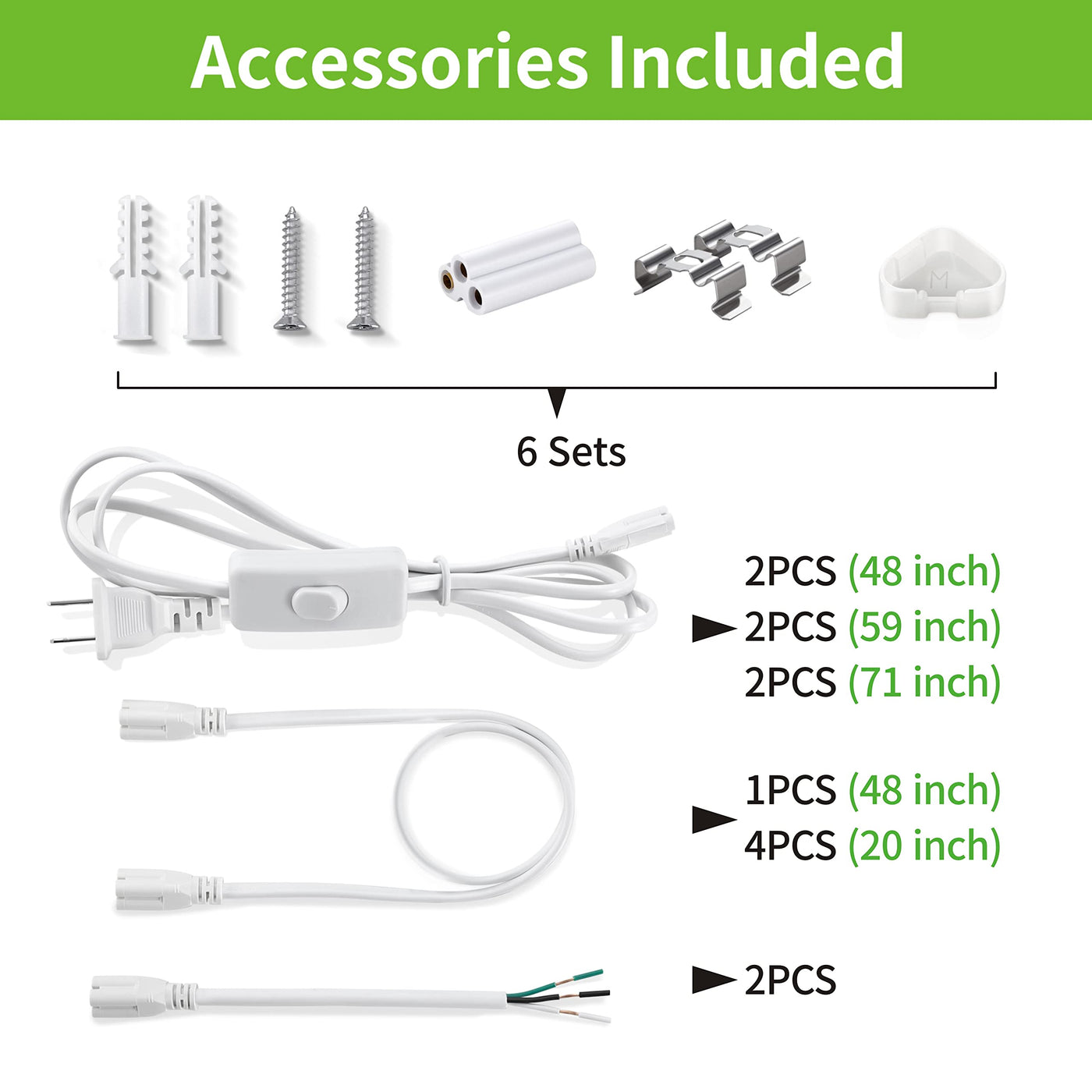 Q: What are the installation requirements for the SUNLINKCO T5 LED integrated fixture?A: The SUNLINKCO T5 LED integrated fixture comes with a complete kit of mounting accessories, including screws and mounting clips, making installation straightforward. The lights are designed for easy plug-and-play setup, with power cords of varying lengths (59/48/71 inches) and connection cables (20/48 inches) for flexible hanging or wall mounting.