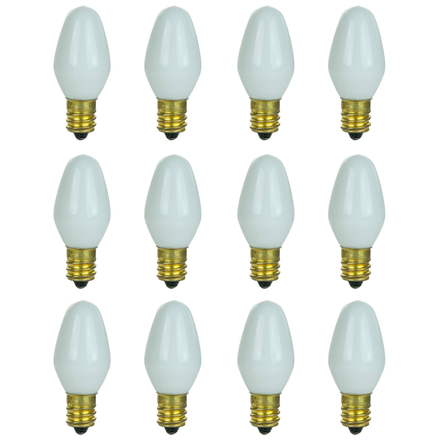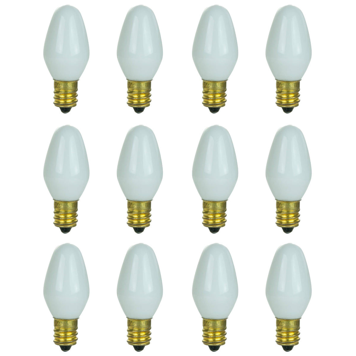 Sunlite 01059 7C7 Incandescent Bulb, 7 Watt, Candelabra E12 Base, C7 Small Night Light, Colored Bulb, White, 12 Count