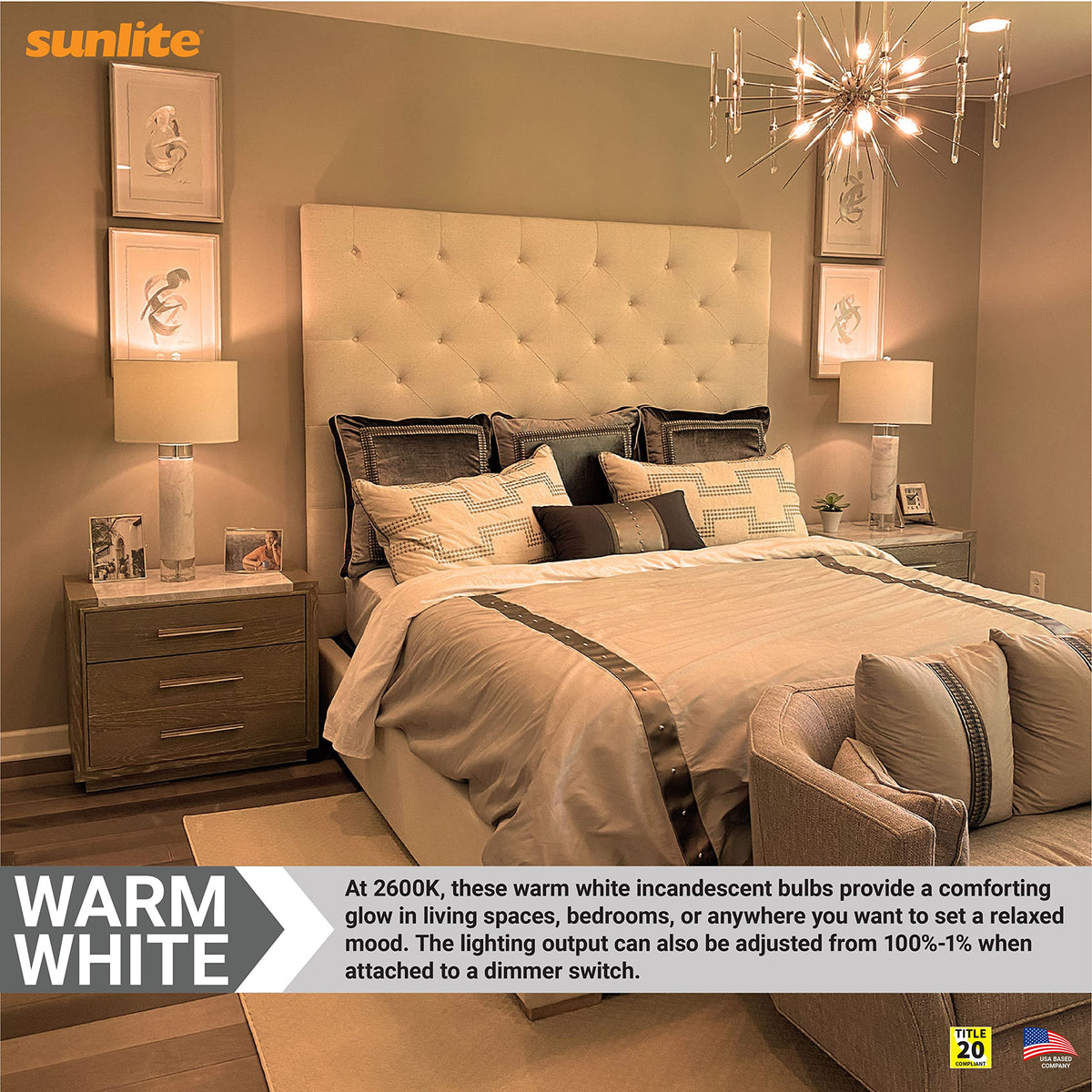 Upgrade your lighting setup with Sunlite G16 Incandescent Light Bulb. Its frosted glass bulb offers a warm glow and provides flicker-free light that is instant at full brightness with no warm-up time and a lumen output of 150 with a watt of 25. Designed with a Medium E26 base, these bulbs effortlessly fit into standard sockets making installation a breeze. At 2600K, these warm white bulbs provide a comforting glow in bedrooms, living spaces or anywhere you want to set relaxed mood. Title 20 approved. Dimensions 2.886 H x 1.97 W x 1.97 W.