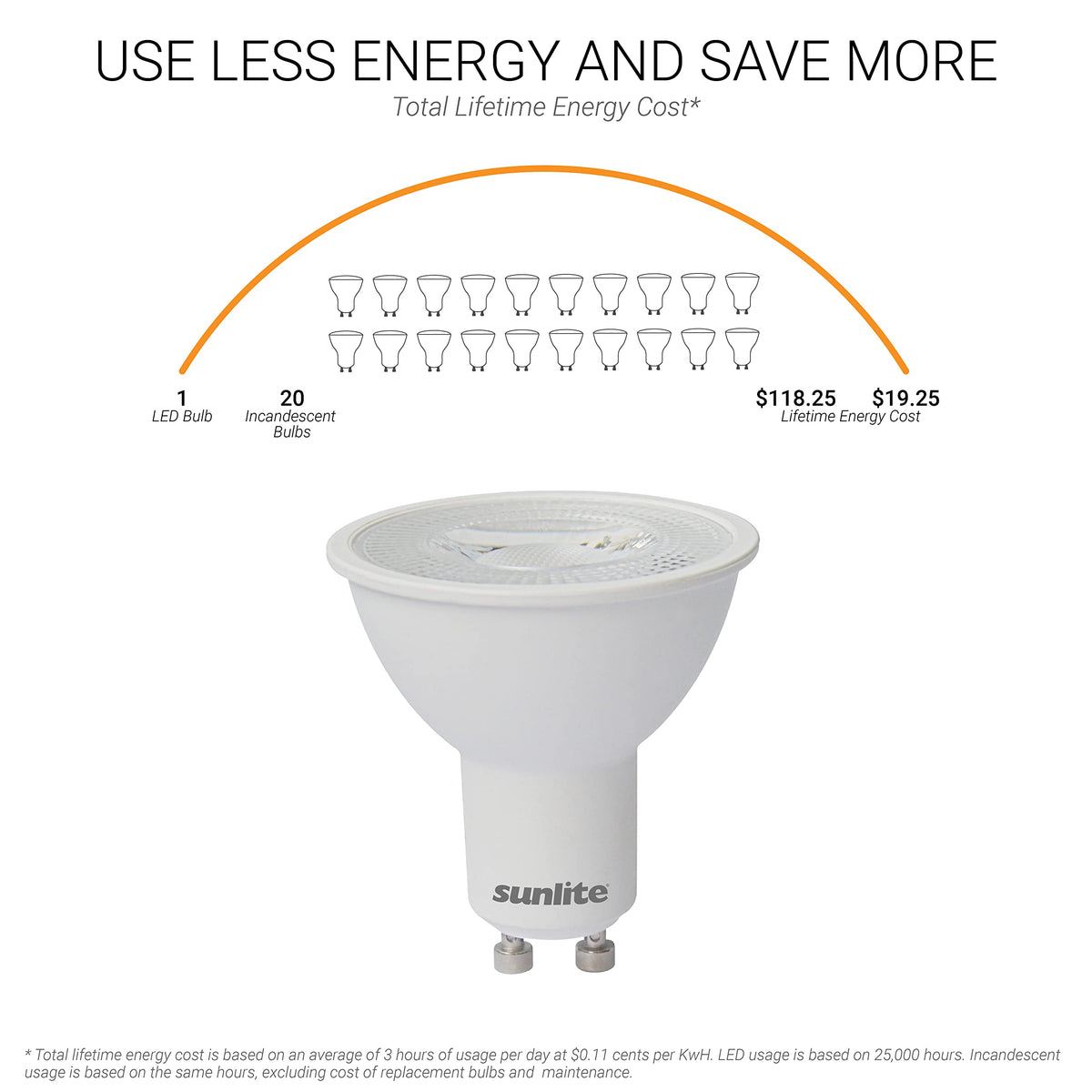 Sunlite MR16 LED 120 volt reflector bulbs are dimmable and have been designed to give you up to 25,000 hours of reliable service. That means fewer replacements for difficult to reach bulbs. These durable led bulbs provide the same output as a 50-watt bulb while only using 7 watts of energy. With upgrading to LED technology, you will get a bulb that is cooler to the touch and instant-on at full brightness with no warmup time. This bulb is ETL Listed and features a GU10 Base.