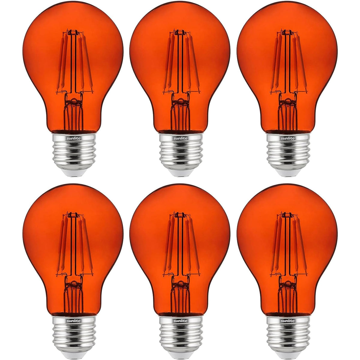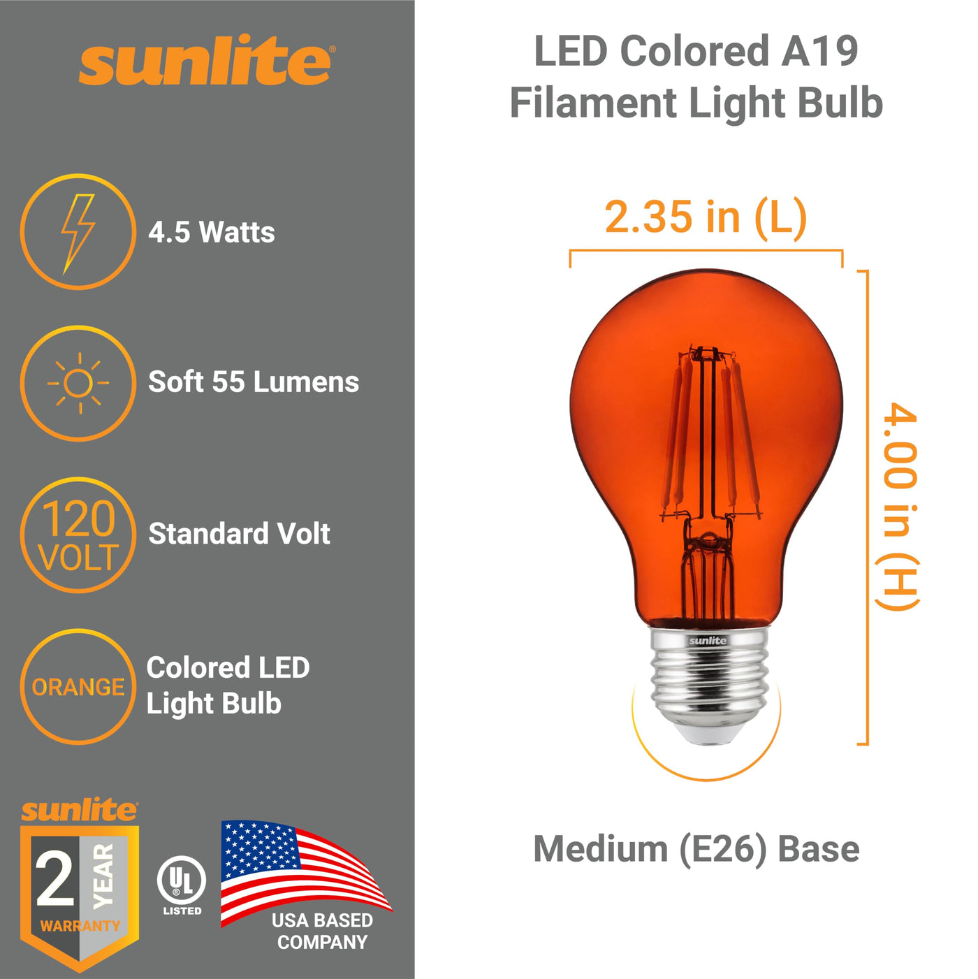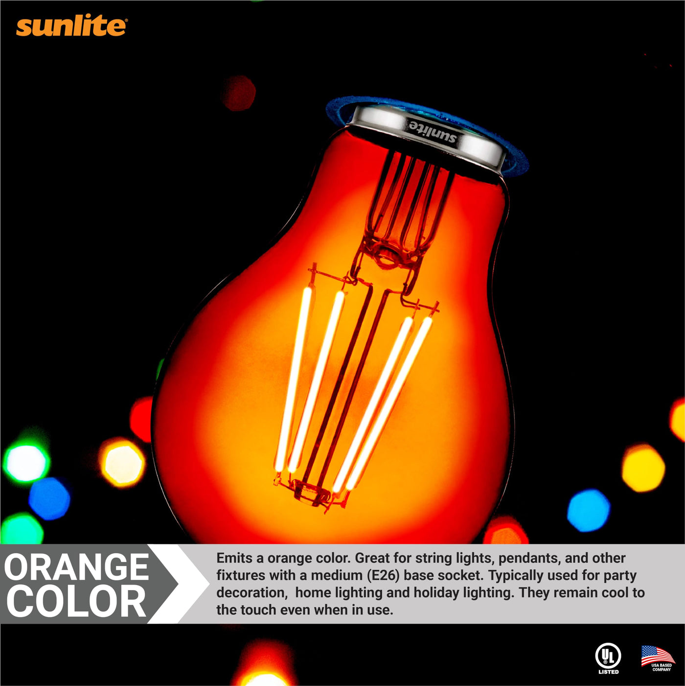 Sunlite 40944 LED Colored Filament A19 Light Bulb, 4.5 Watts, Medium E26 Base, 120 Volts, Transparent Orange, Dimmable, 320 Degr