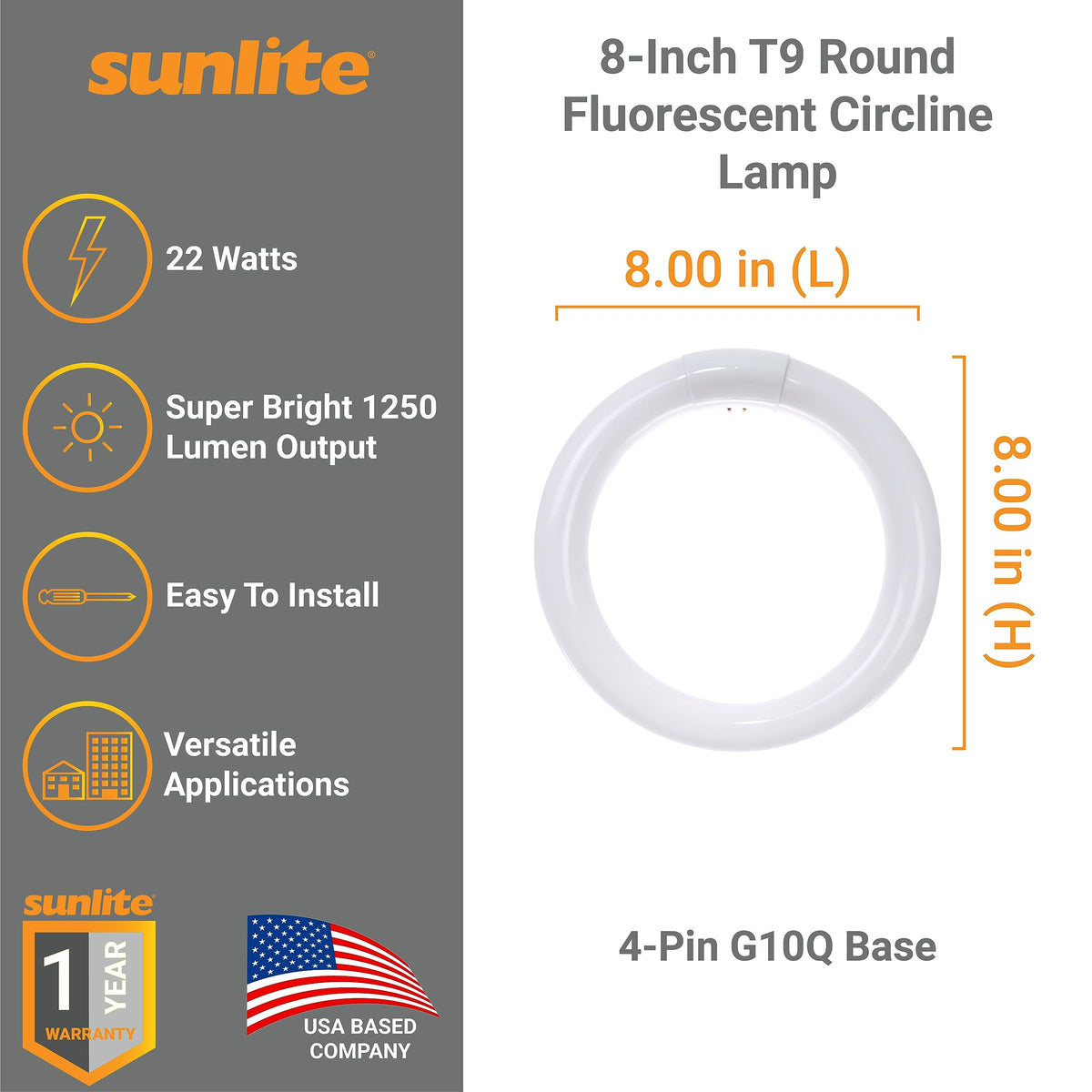 Sunlite 41316-Su Fc8T9 Circline Fluorescent Lamps, 8-Inch Size, 22 Watts, 1150 Lumens, 4-Pin Base (G10Q), 10,000 Life Hours, 41K - Cool White