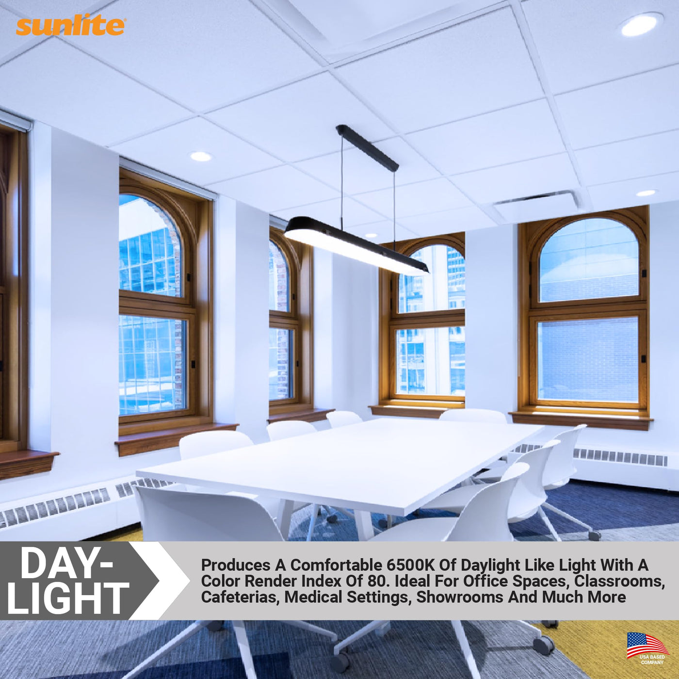 Sunlites double U-shaped fluorescent lamps are fabricated to accommodate ceiling light fixtures typically found in office spaces, clinics/medical centers and many other commercial as well as industrial settings.