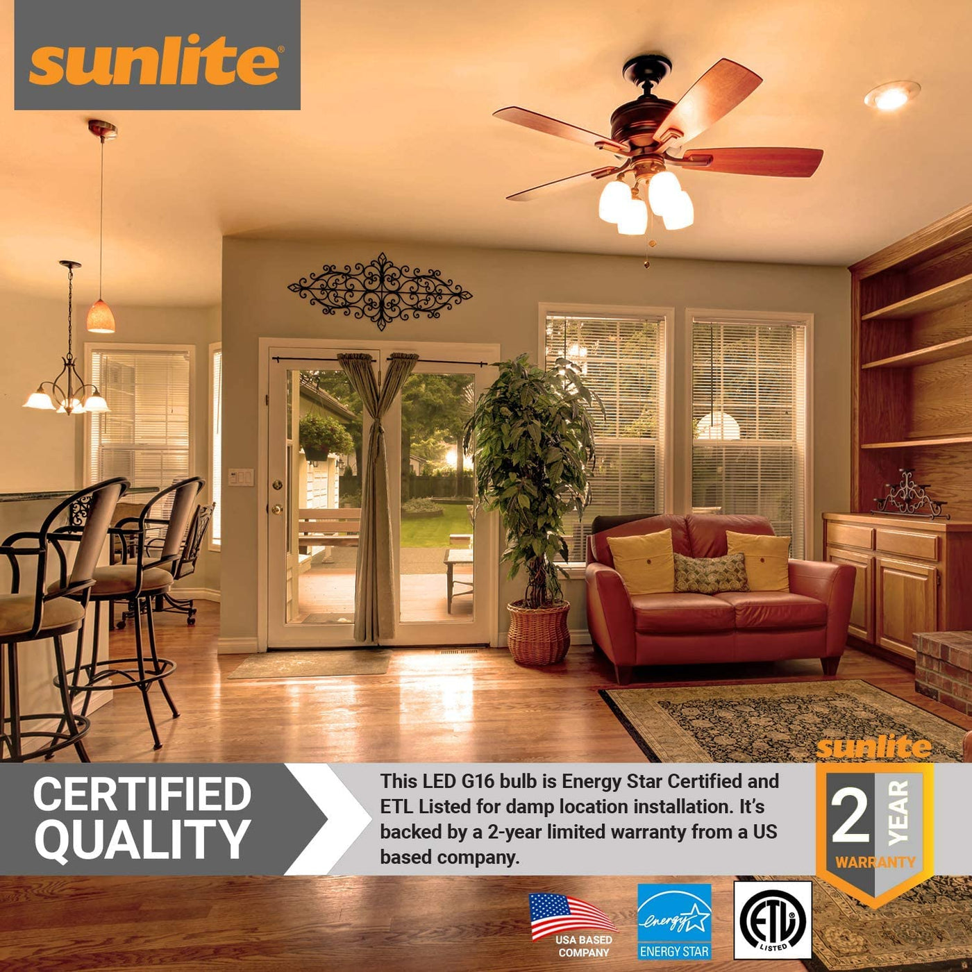 Upgrade your lighting with Sunlite Dimmable LED bulbs. With a G16 globe shape and medium (E26) base they are an energy efficient replacement for 40 watt incandescent while only using 5 watts of electricity. They are instant-on at full 350 lumen brightness. With an average life of 25000 hours these long life bulbs need to be replaced less often. The estimated annual energy cost is a low $0.60 (Based on 3 hr/day use at $0.11 per/kWh). These 2700 Kelvin soft white light bulbs provide a comforting warm glow that can be adjusted with a dimmer for perfect lighting. Color Rendering Index (CRI) of 80. They are cool to the touch even when lit making them perfect for vanity fixtures, decorative lamps, restaurants light and more. These bulbs are Energy Star rated and ETL Listed for dry location installation. Ideal for both residential and commercial use. Save time and money with Sunlite LED bulbs. Not for use in totally enclosed, recessed fixtures.