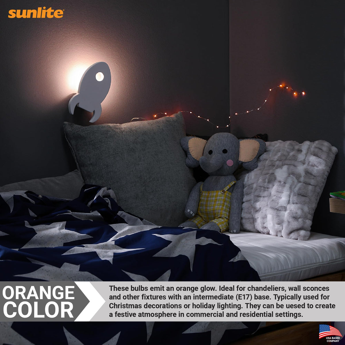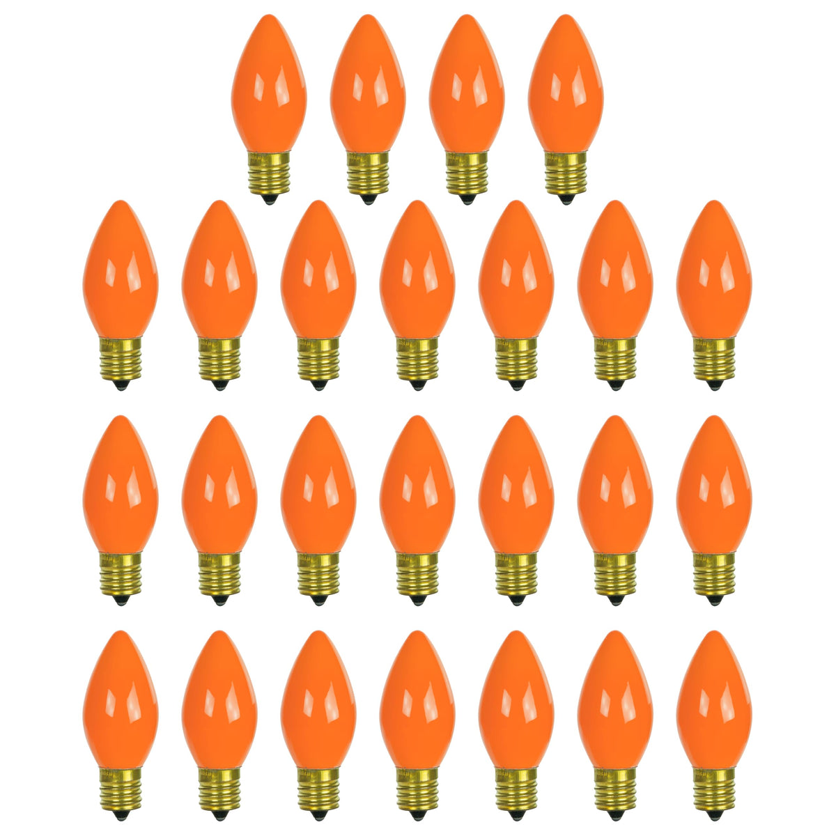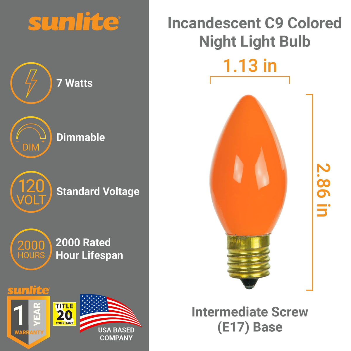 The Sunlite Incandescent C9 Colored Night Light Bulb is a perfect choice for festive decorations and creating a warm ambiance. Emitting a vibrant orange glow at just 7 watts, these bulbs provide efficient lighting while keeping energy consumption low. With a lifespan of 2000 rated hours, they are designed to last through many seasons, reducing the need for frequent replacements.