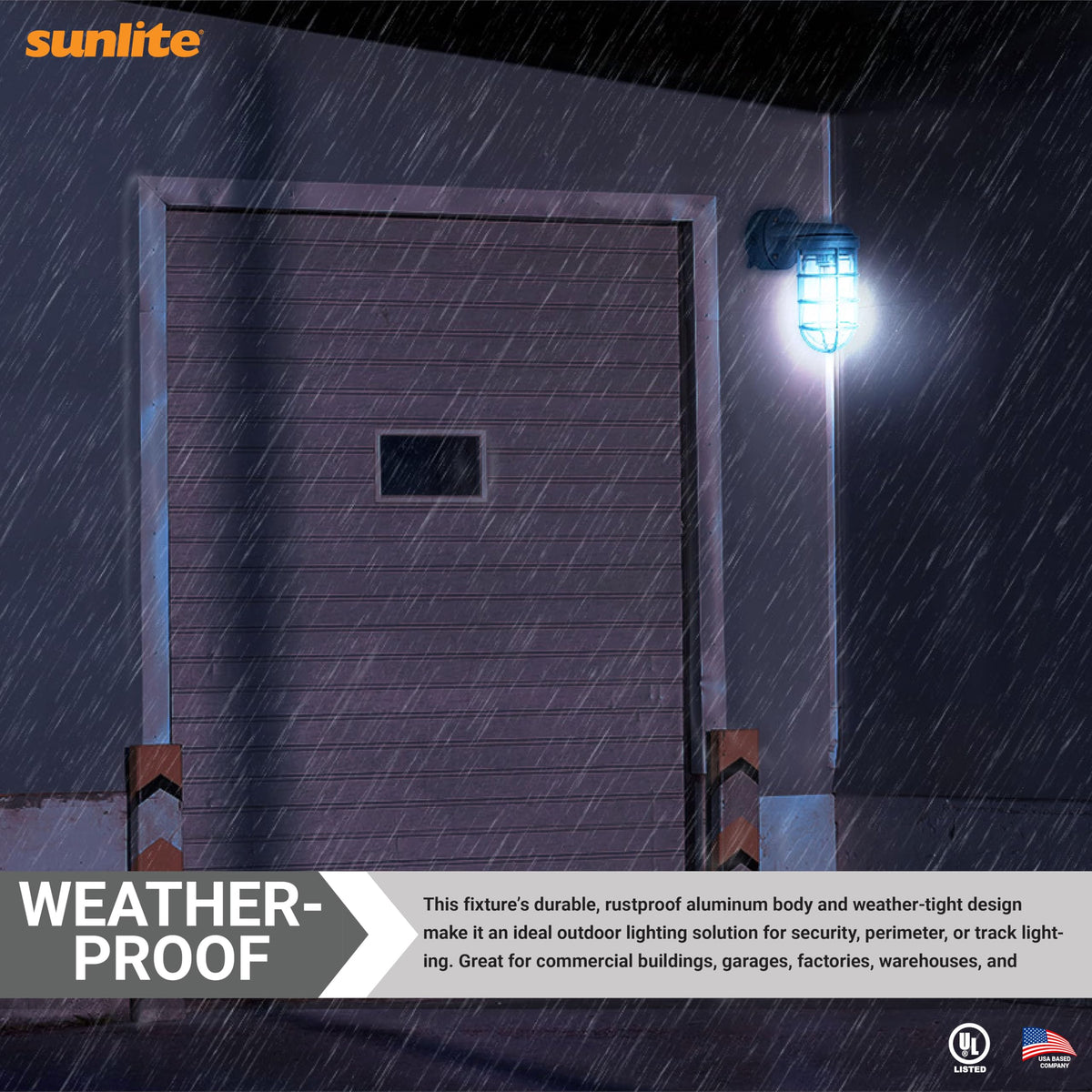 Sunlite Vaporproof Industrial Jar Light Fixture, Medium Base Socket (E26), Wall Mount, 100W Max, 120V, For Security Construction