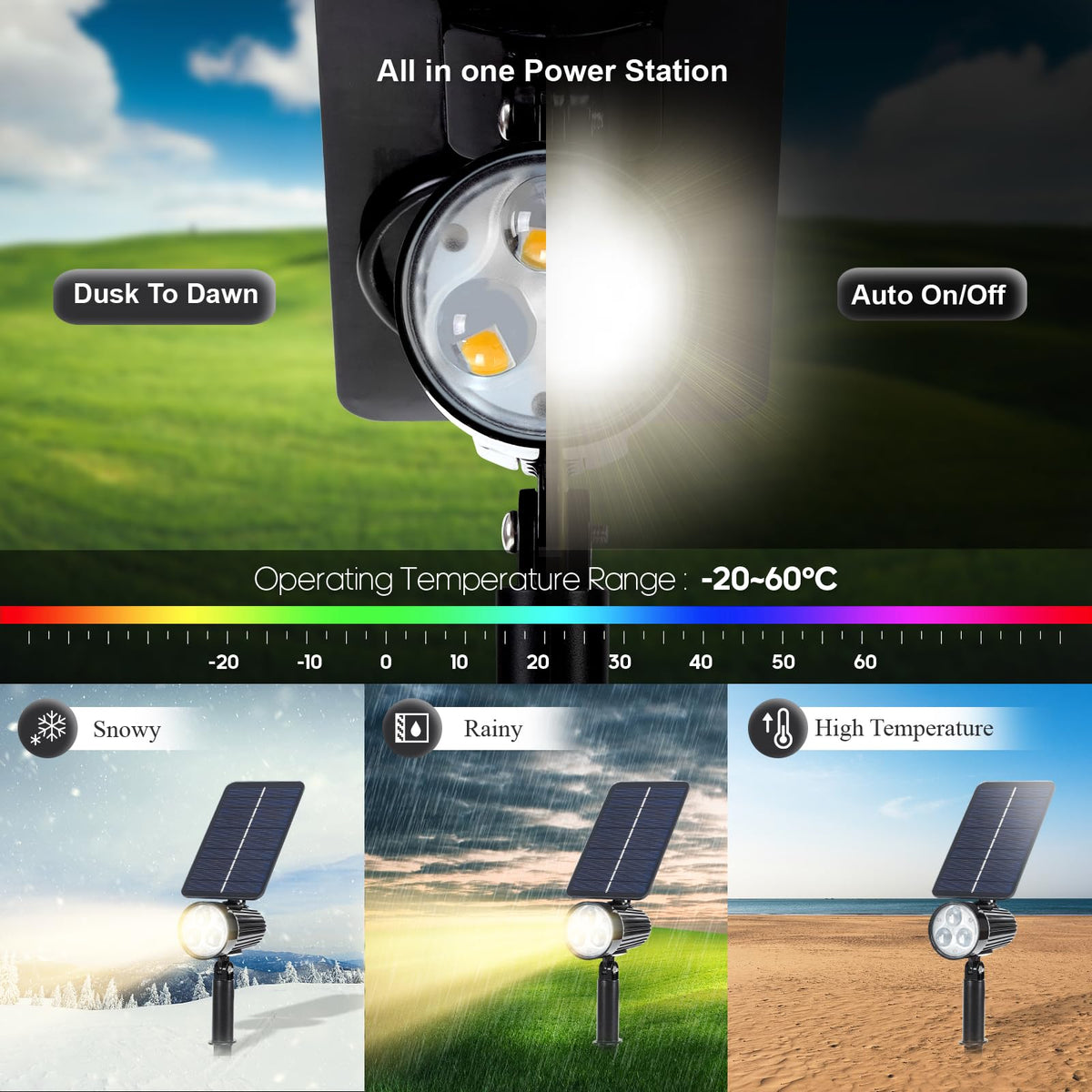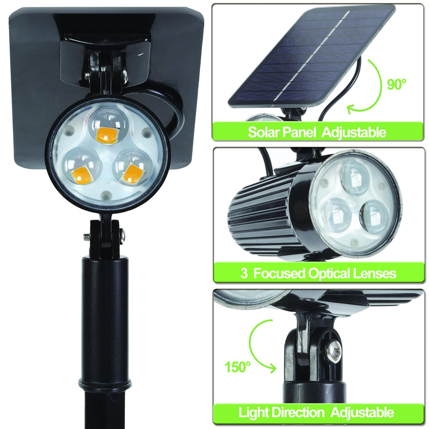 Friendly Note: *** Please Make Sure Connect The Plug And Have It Installed Carefully *** The Working Hours For This Product Could Be Shortened During Winter Because Solar Products Are Very Weather Sensitive Description : *** Light Up Your Favorite Ornaments /Tree/Garage/Walk Way/ Drive Way.. In The Yard With This Solar Spotlights Station 2 In 1. Built-In Super Bright Led By Reflector Housing For Strong Beam Of Brightness To Light Any Prizewinning Outdoor Feature. The Light Will Stay Bright For Up To 8-10 Hours Automatically Features: *** High Transfere Efficiency 2.5 Watt Solar Panels To Absorb Maximum Sunshine Exposure To Sun *** High Lumen Bullet Led Produce More Than 200 Lumens Output Totally. 3 Modes Of Different Brightness Output Optional Switch *** Two-Way Mounting Of Spots: Stake-To-Ground Or Wall-Mount With Mechanical Fasteners To Create Soft Downlight / Uplight Ascend