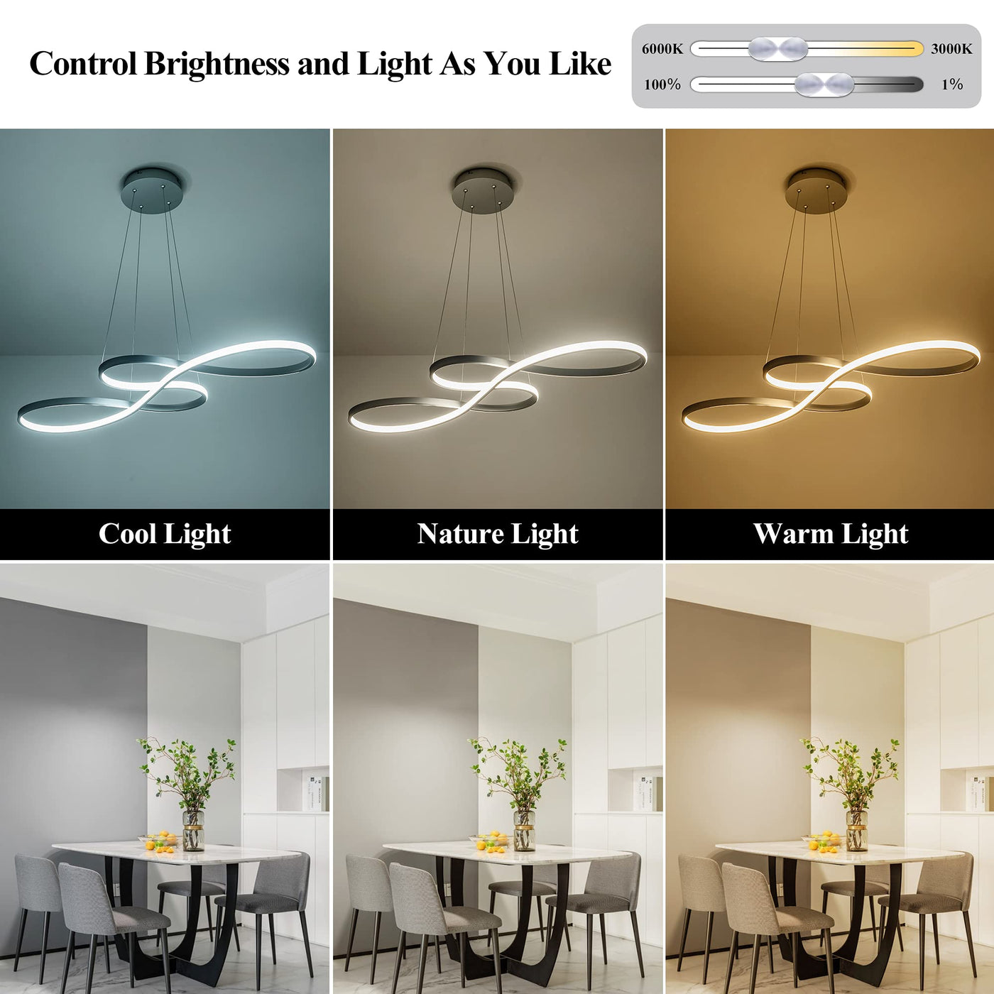 Sunmoo Modern Led Chandelier Dining Room Pendant Light Dimmable Creative Chandelier Remote Control Color/Brightness 3000-6000K A