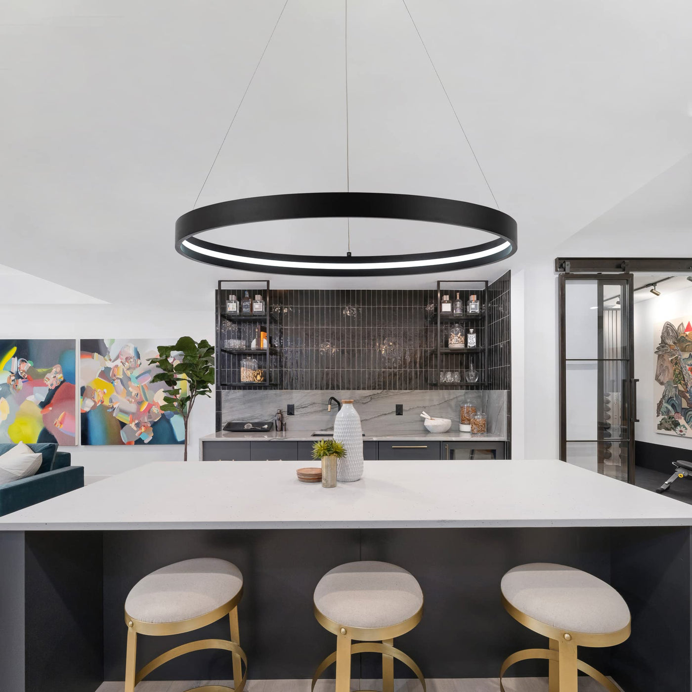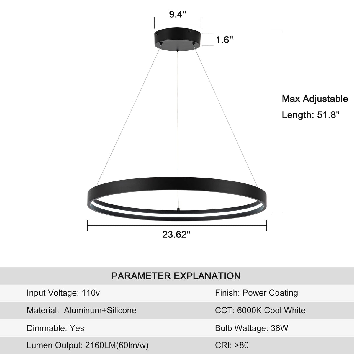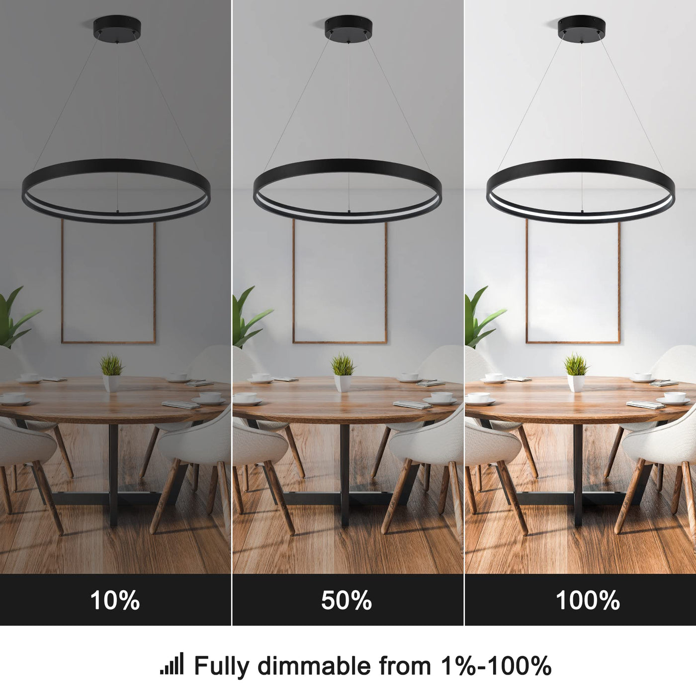 Sunmoo Modern Led Chandeliers Black, Dimmable Contemporary Led Chandeliers 1 Ring, Hanging Led Modern Pendant Light Fixture For