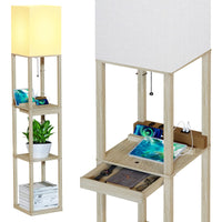 Sunmory Floor Lamp With Shelves,Modern Dimmable Wood Standing Lamp With 1 Drawer And 2 Usb Ports & 2 Power Outlet,Corner Tall Bo