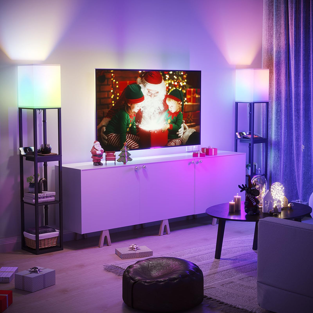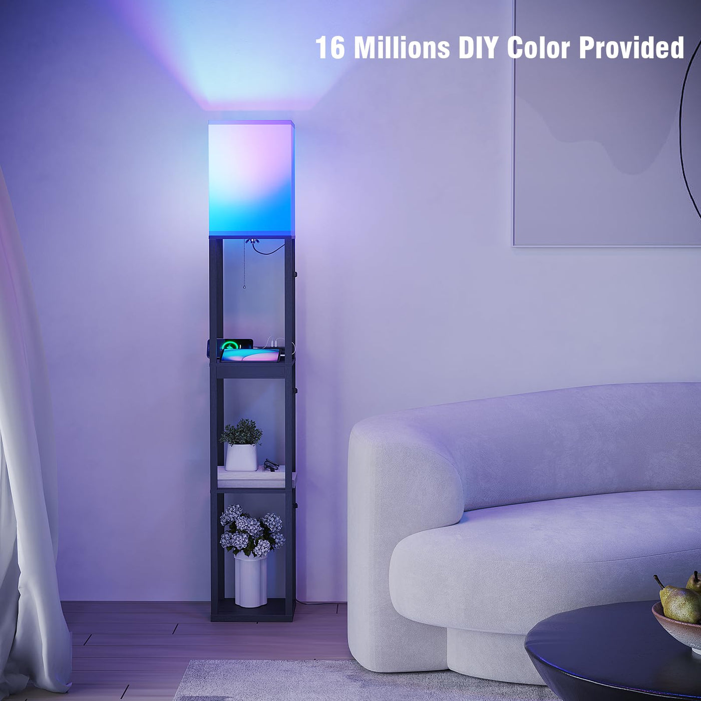 Sunmory Floor Lamp With Shelves, Rgb Light Dimmable Standing Lamp With App Control, Tall Shelf Lamp For Living Room And Bedroom,