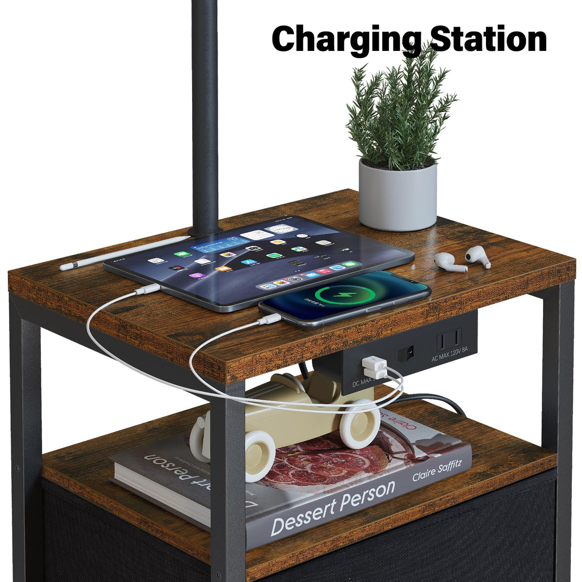 Sunmory Floor Lamp With Table & 2 Drawers, Lamp With Usb Port And Outlet, Nightstand With 3 Color Temperature Led Bulb Included,