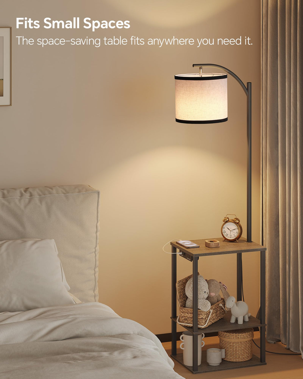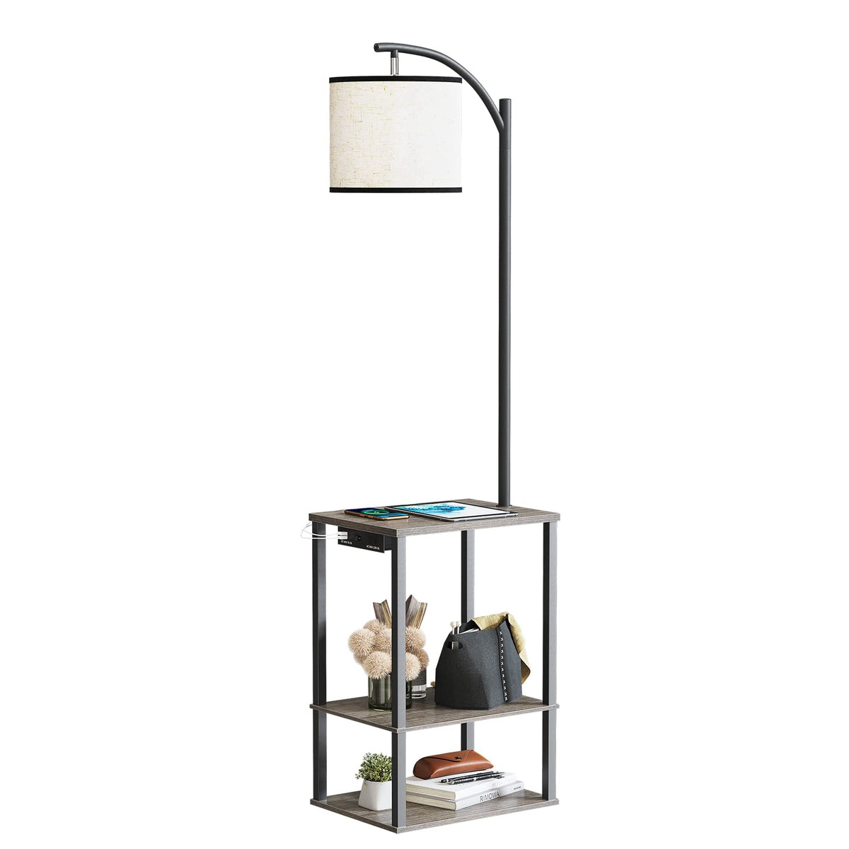 Sunmory Floor Lamp With Table, End Table With Lamp, Shelves, Charging Station(Usb & Ac Port), 3-Color Temperature Led Bulb, Side