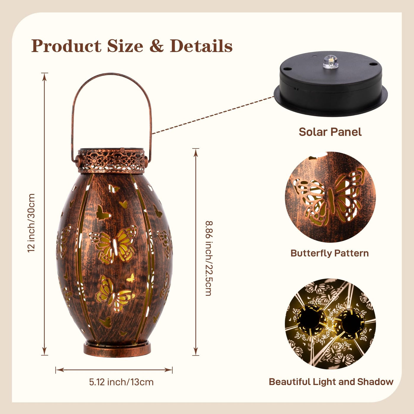 Sunnygarden 2 Pack Outdoor Solar Lanterns Waterproof Butterfly Decorative Hanging Solar Lantern Lights For Outside Patio Tableto Garden Yard Lawn Decor, Gifts For Mom Grandma Woman