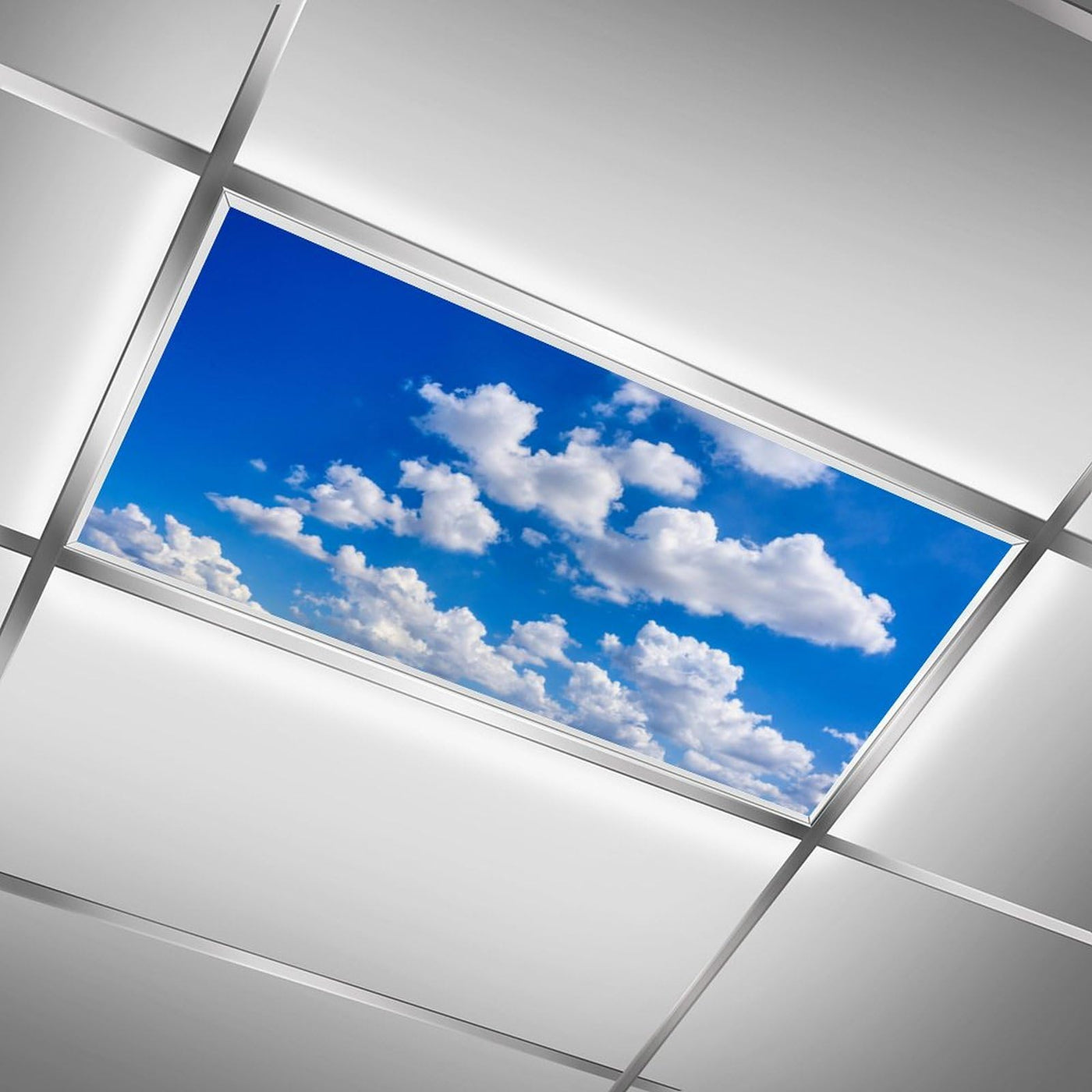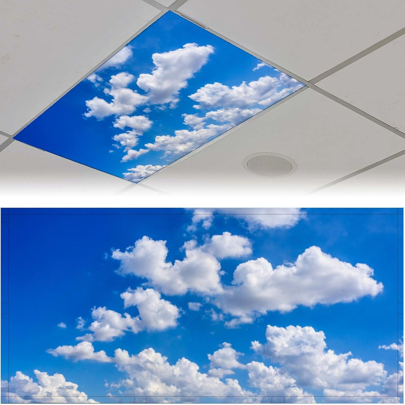 Sunnyhut 2 Pack Fluorescent Light Cover For Ceiling Light -White Clouds Blue Sky Magnetic Light Covers Classroom, Light Filters