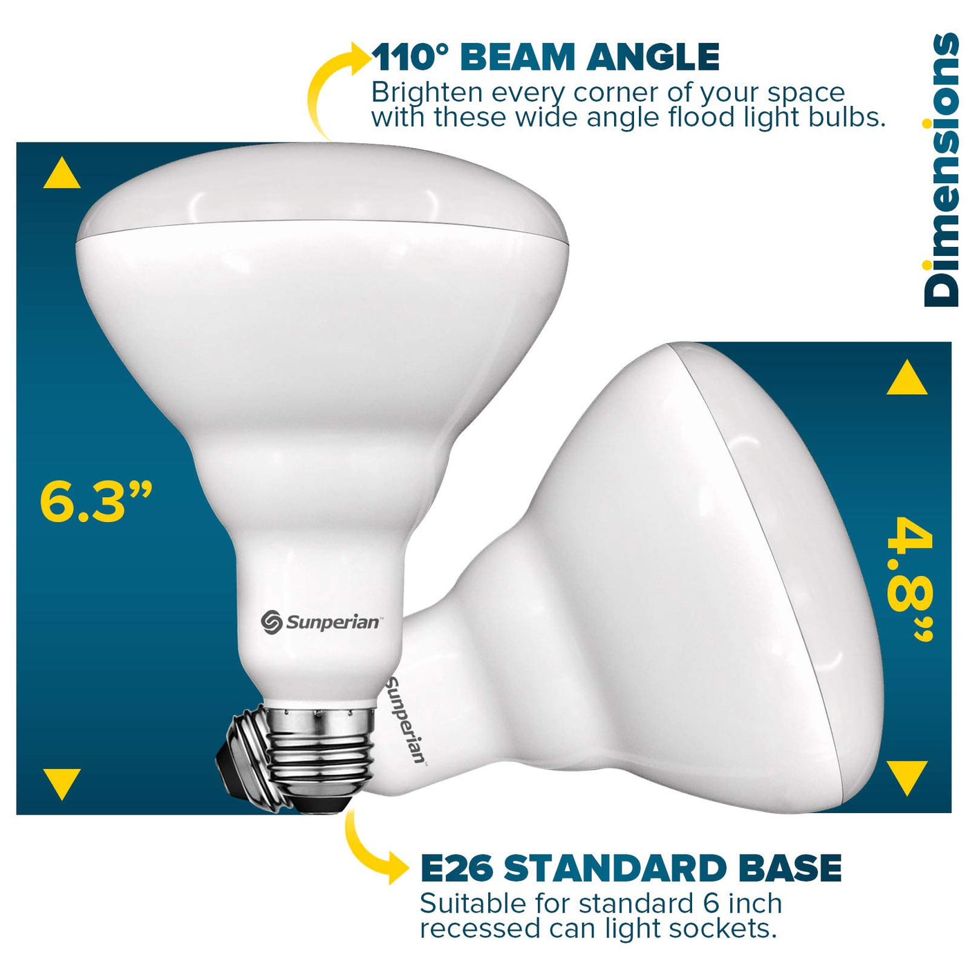 Illuminate your space with the Sunperian BR40 LED Flood Light Bulbs, designed to provide exceptional lighting for both indoor and outdoor settings. Experience versatility, energy efficiency, and long-lasting performance with this premium lighting solution.