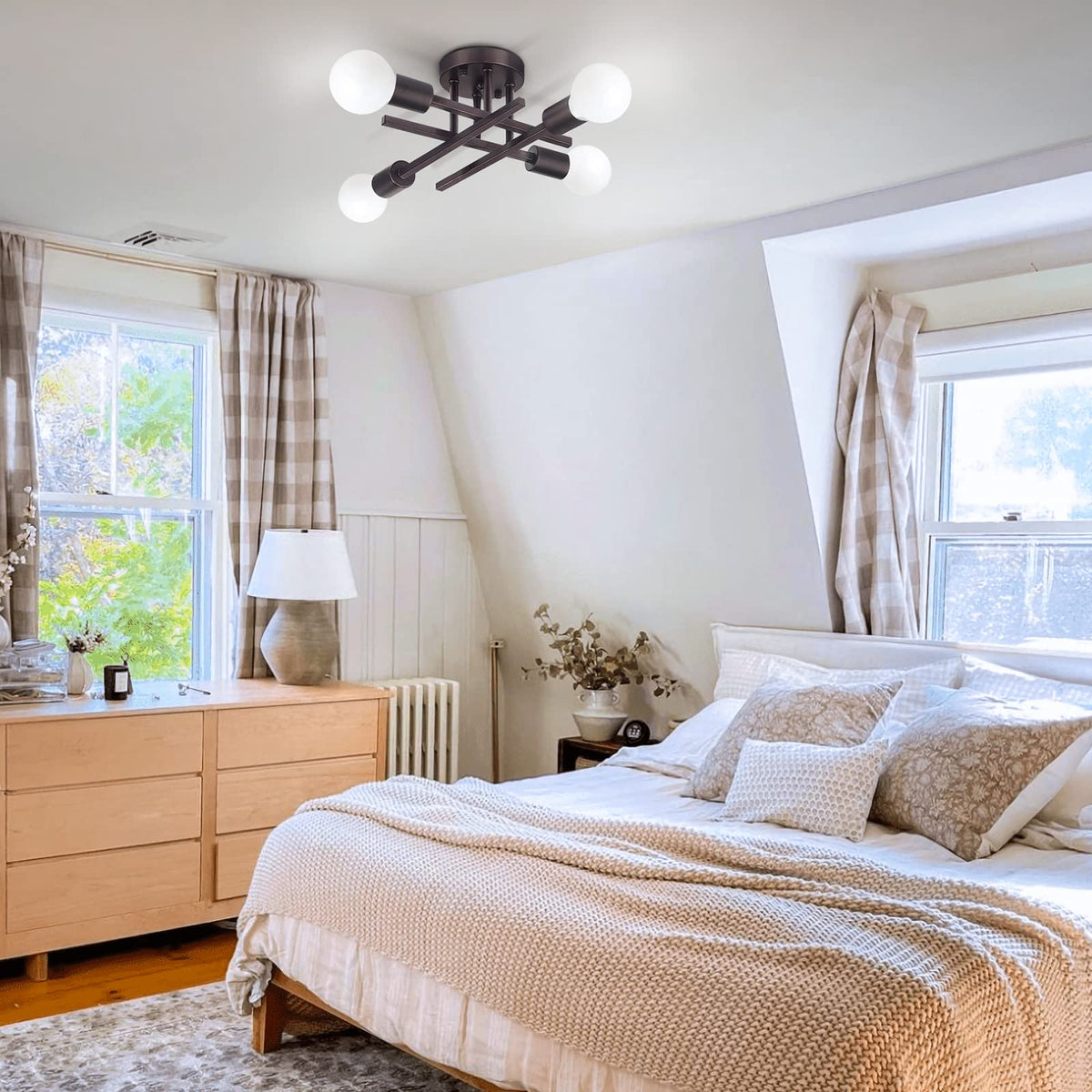 Sunrider Industrial 4-Light Semi Flush Mount Ceiling Light Fixture, Bronze Farmhouse Ceiling Lights, Rustic Metal Sputnik Chande
