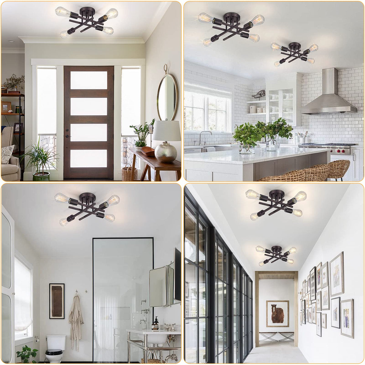 Introductions: Semi Flush Mount 4 Light Ceiling Lights Specifications: Voltage: 110-120V Wattage: Max 60W Per Socket Frequency: 60Hz Material: Metal Style: Classic/Modern/Industrial Power Source: Corded-Electric Installation Way: Ceiling Mount Bulbs Not Included Recommended Bulbs: E26 Base Socket Is Compatible With Various Bulbs, Such As Led, Incandescent, Cfl. Recommended Edison Bulbs(Bulb Not Included). Takes 4 Maximum 60 Watt E26 Medium Base Bulbs (Not Included). Recommended Applications: Bathroom, Kitchen, Basement, Hotel, Powder Room, Restaurant, Bedroom, Study Room, Farmhouse, Living Room, Workshop, Shop, Office, Hallway, Entryway, Porch, Balcony, Stair, Window, Tv Side, Bar, Cafe, Foyer, Mudroom, Guest Room, Galley Package Includes 1 X 4-Light Ceiling Light Fixture 1 X Tool Kit 1 X User Manual Notice: Cut Off Power Before Installing Or Cleaning The Light. The Light Supports Up To 60 Watts Maximum Per Socket. Do Not Put The Wall Sconce In Overheating Working Condition Or Cast It Into The Fire. Do Not Retrofit The Product, The Bulb Does Not Be Included.